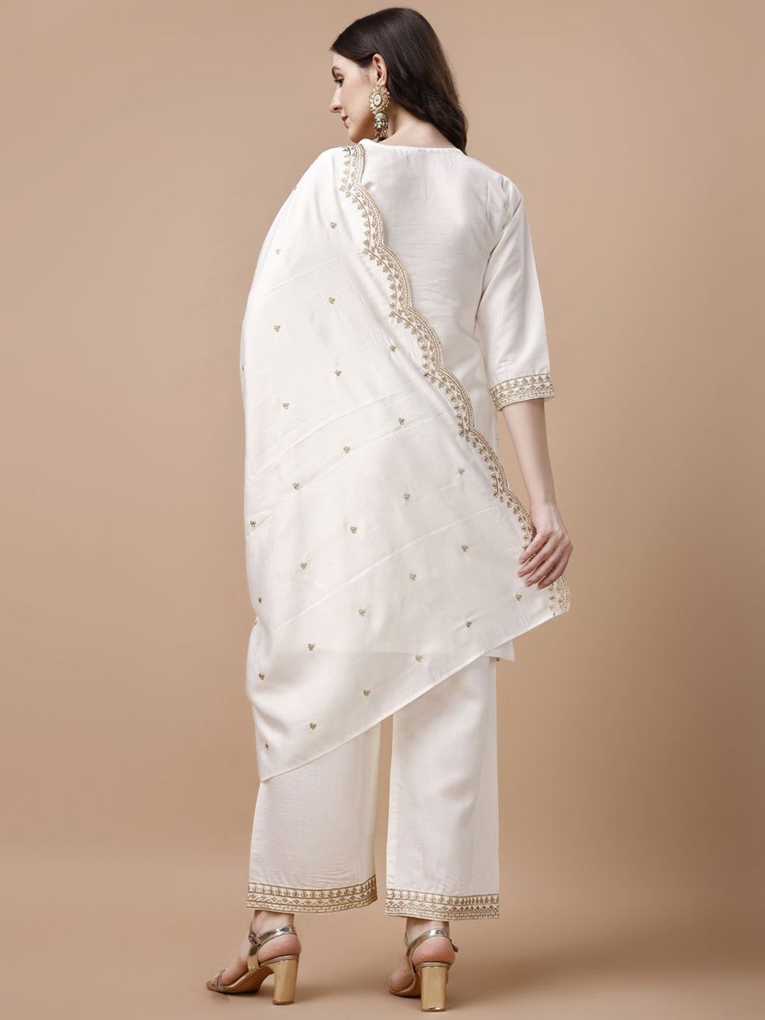 KALINI Ethnic Motifs Embroidered Straight Zari Kurta With Trousers & Dupatta
