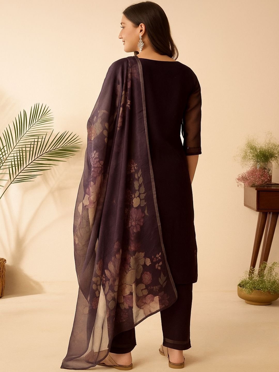 KALINI Ethnic Motifs Embroidered Thread Work Chanderi Silk Kurta With Trousers & Dupatta