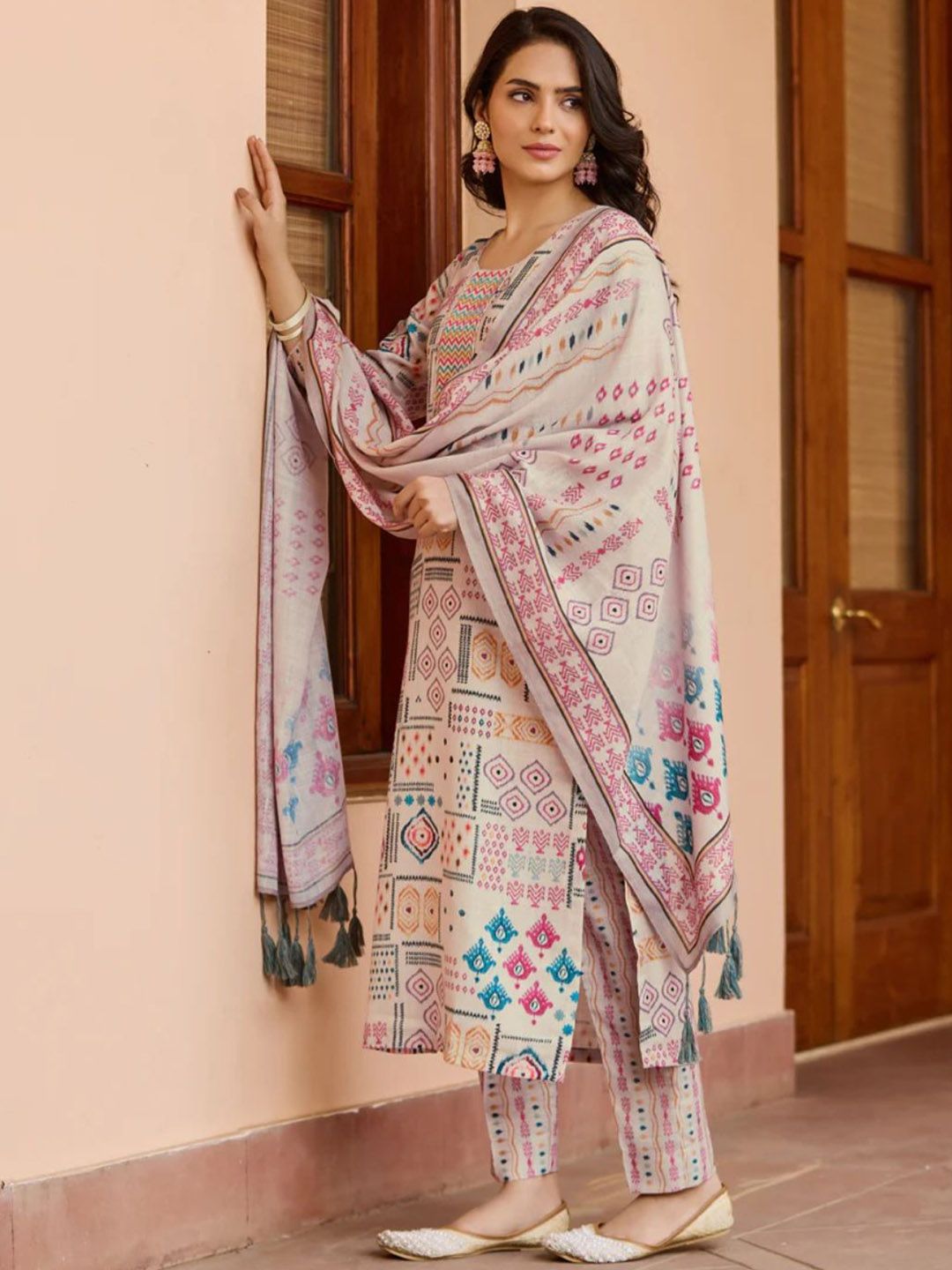 Buy this stylish KALINI Ethnic Motifs Printed Pure Cotton Straight Kurta With Trousers & Dupatta at Marincart Nepal. This product offers great quality and value. Perfect for those looking for the latest trends in fashion. Get yours now at unbeatable prices.
