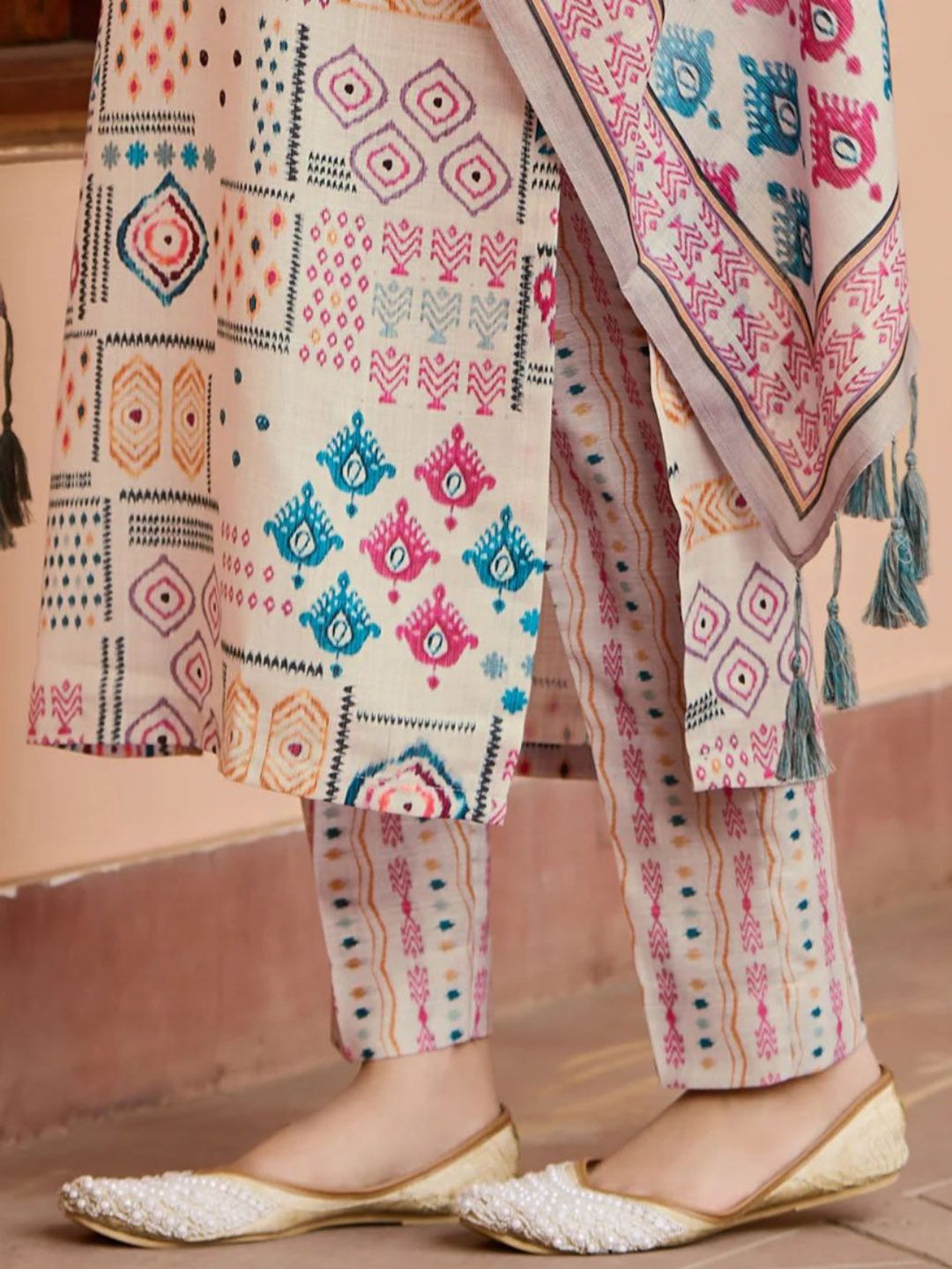 KALINI Ethnic Motifs Printed Pure Cotton Straight Kurta With Trousers & Dupatta