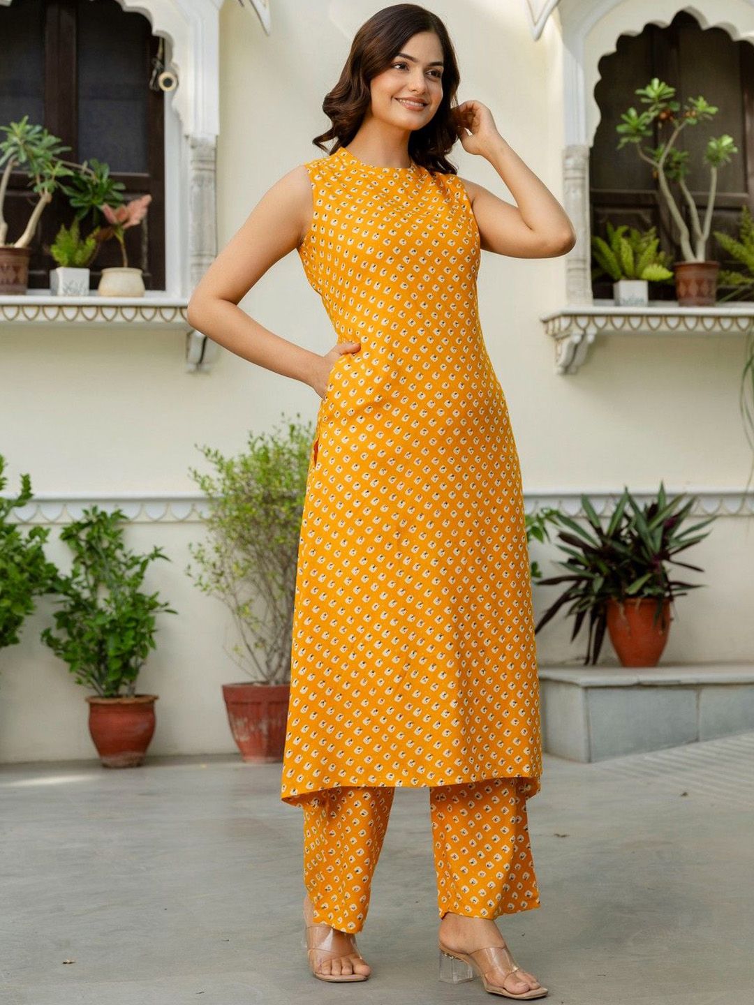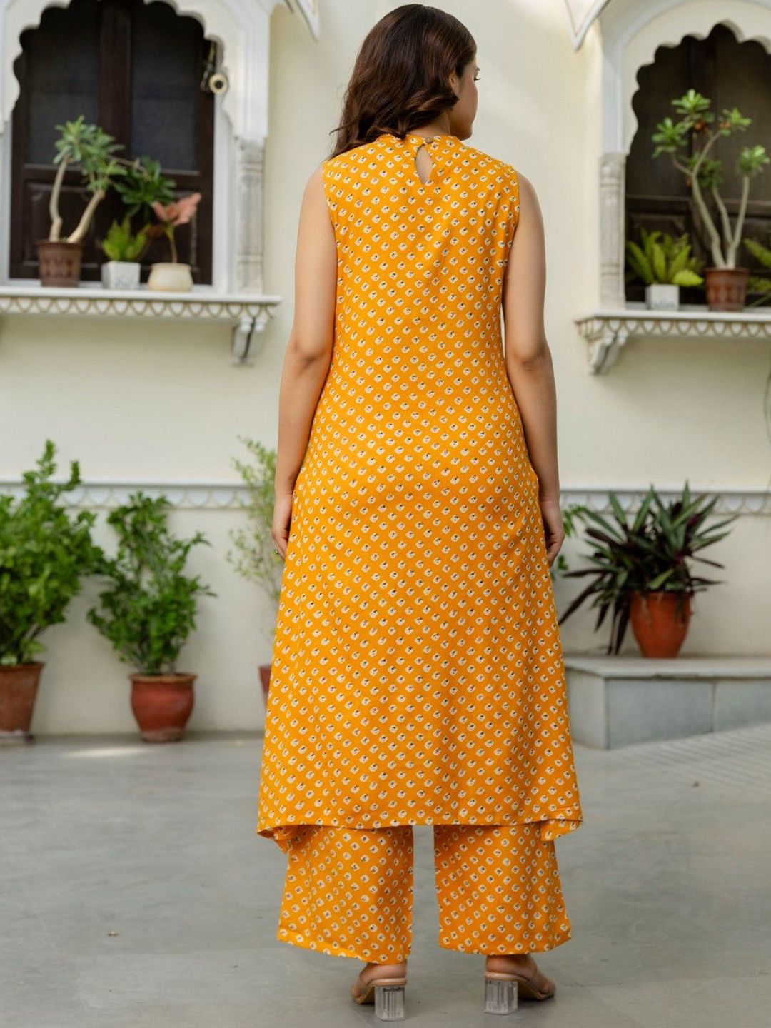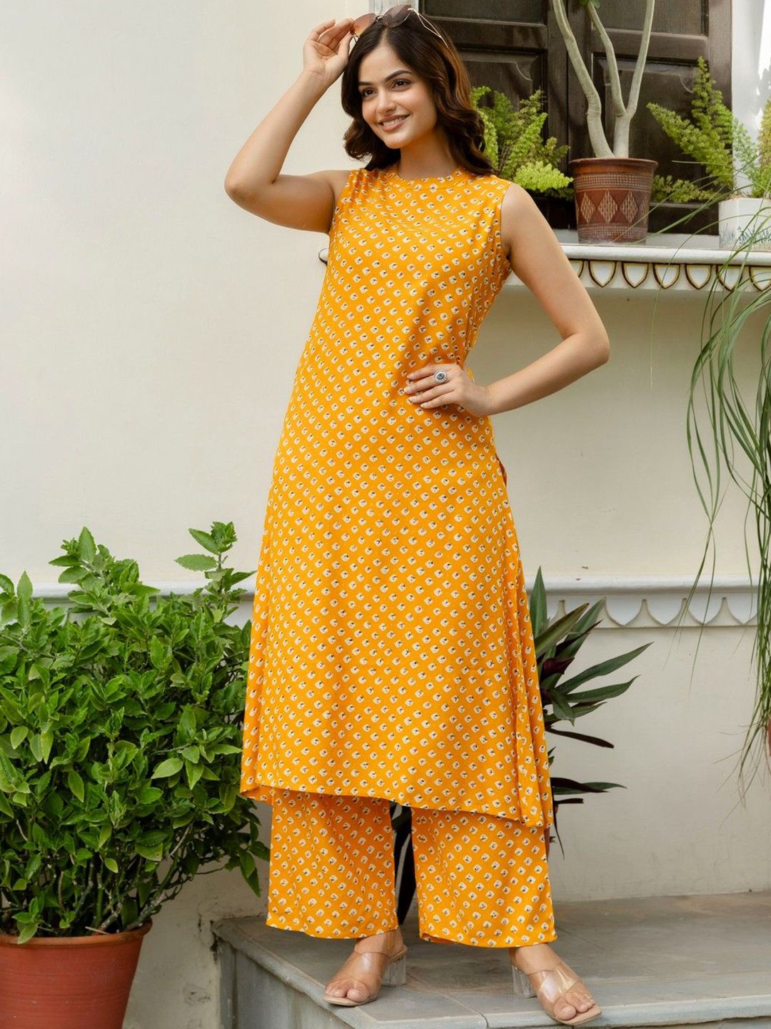 KALINI Ethnic Motifs Printed Round Neck A-Line Kurta With Palazzo