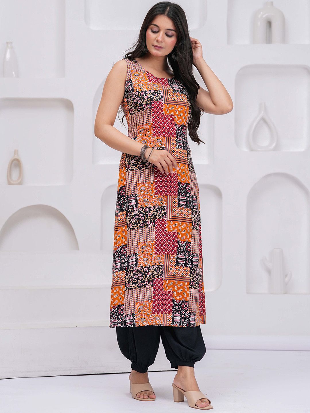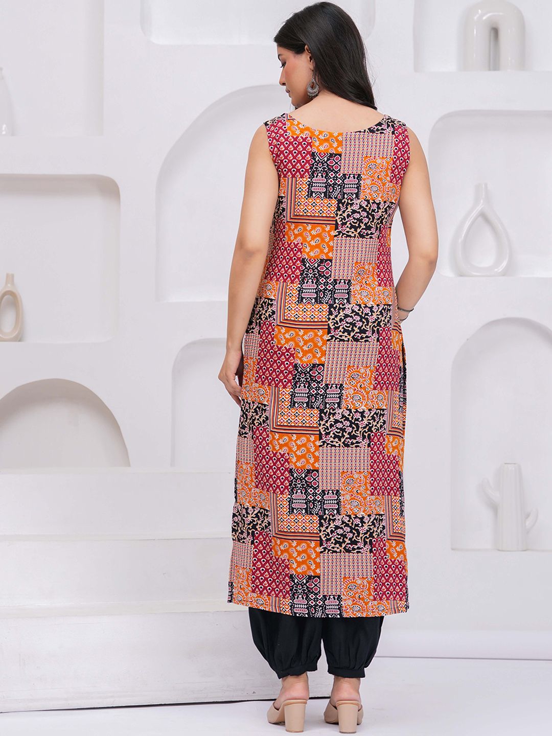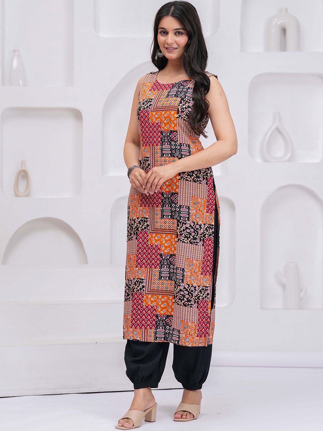 KALINI Ethnic Motifs Printed Sleeveless Straight Kurta With Harem Pants