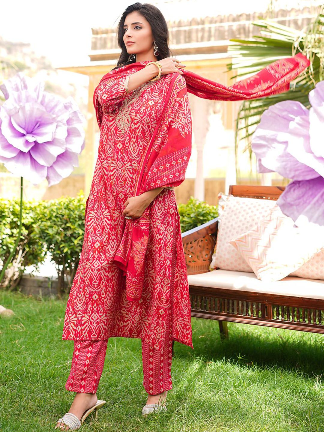 Buy this stylish KALINI Ethnic Motifs Printed V-Neck Sequinned Straight Kurta With Trousers & Dupatta at Marincart Nepal. This product offers great quality and value. Perfect for those looking for the latest trends in fashion. Get yours now at unbeatable prices.