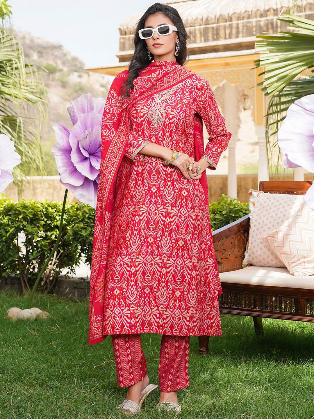 KALINI Ethnic Motifs Printed V-Neck Sequinned Straight Kurta With Trousers & Dupatta
