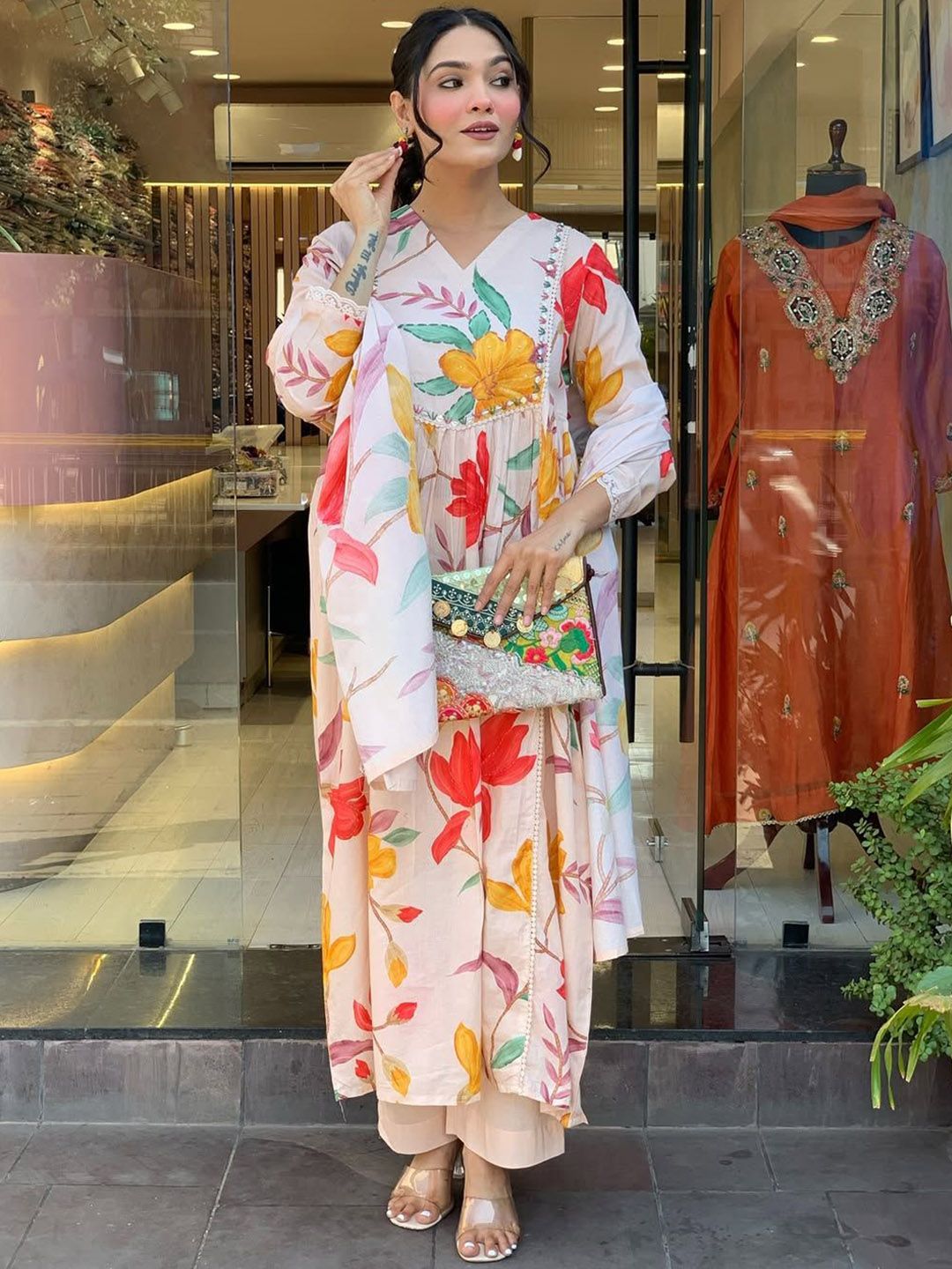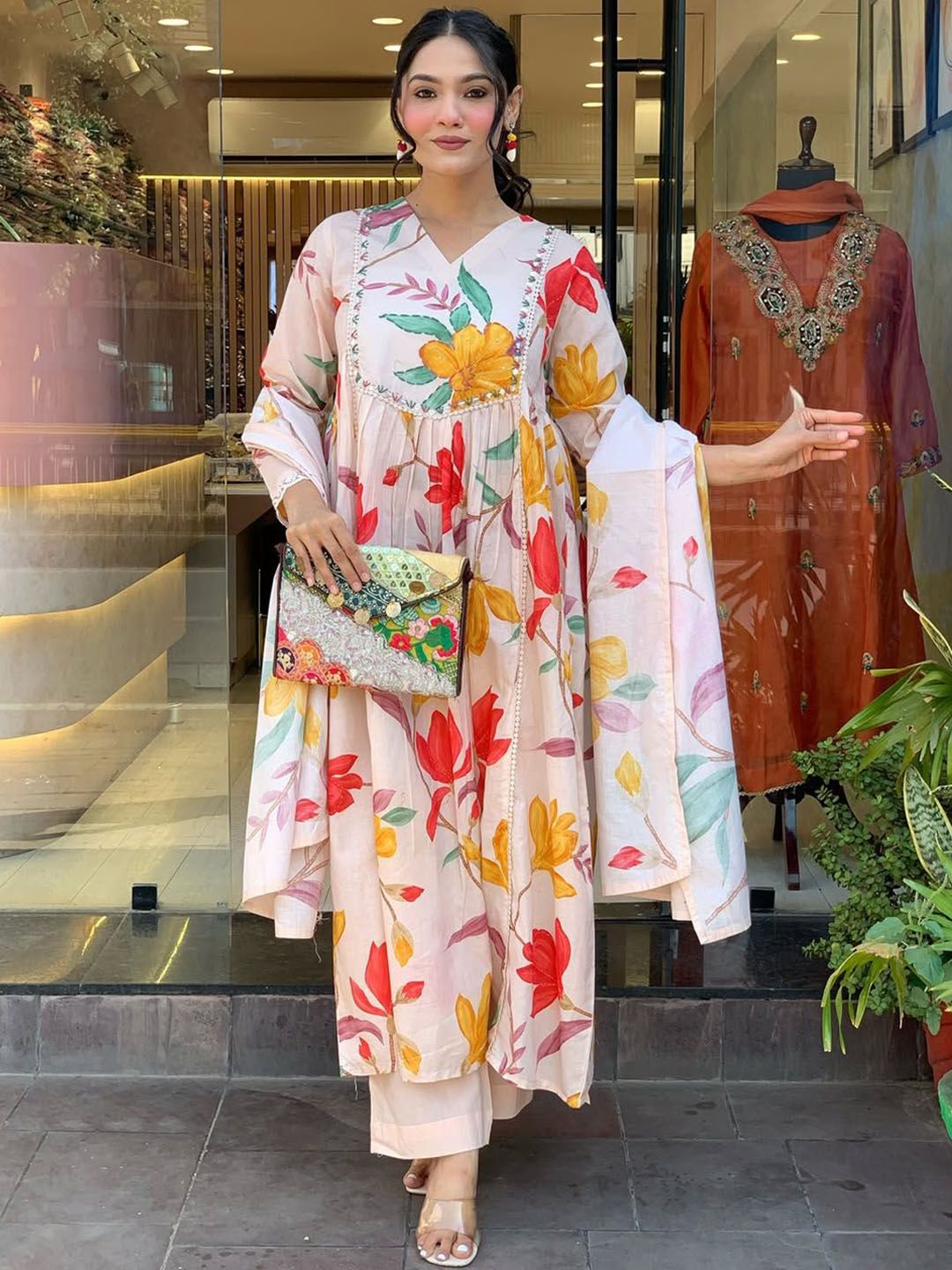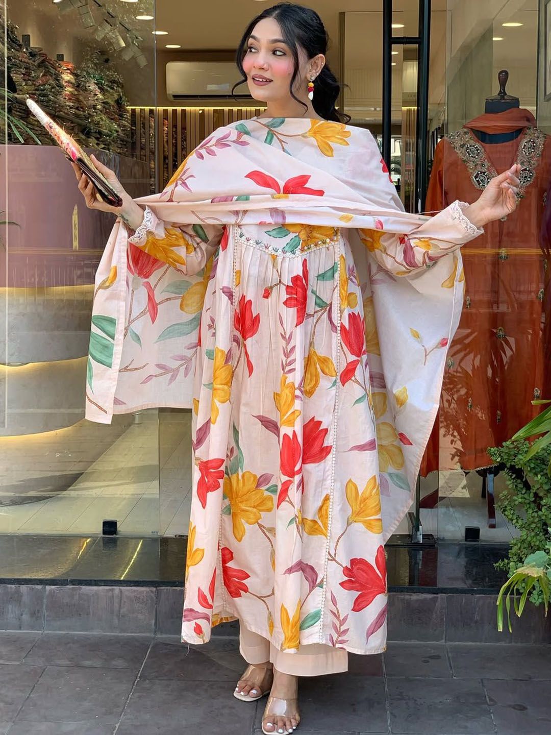 Buy this stylish KALINI Floral Embroidered Anarkali Thread Work Kurta With Trousers & Dupatta at Marincart Nepal. This product offers great quality and value. Perfect for those looking for the latest trends in fashion. Get yours now at unbeatable prices.