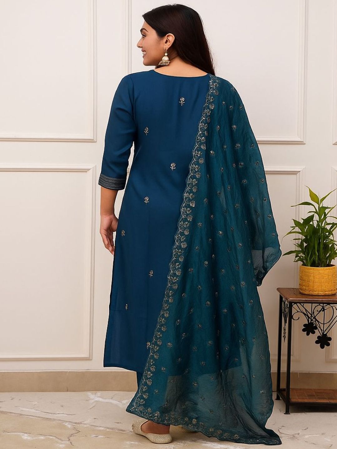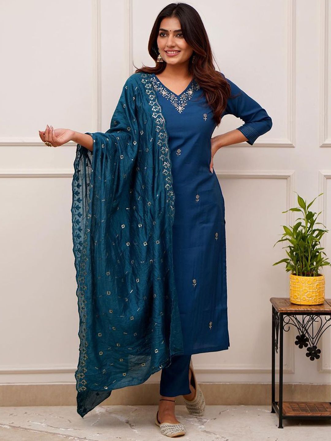 Buy this stylish KALINI Floral Embroidered Chanderi Silk V-Neck Straight Kurta With Trousers And Dupatta at Marincart Nepal. This product offers great quality and value. Perfect for those looking for the latest trends in fashion. Get yours now at unbeatable prices.