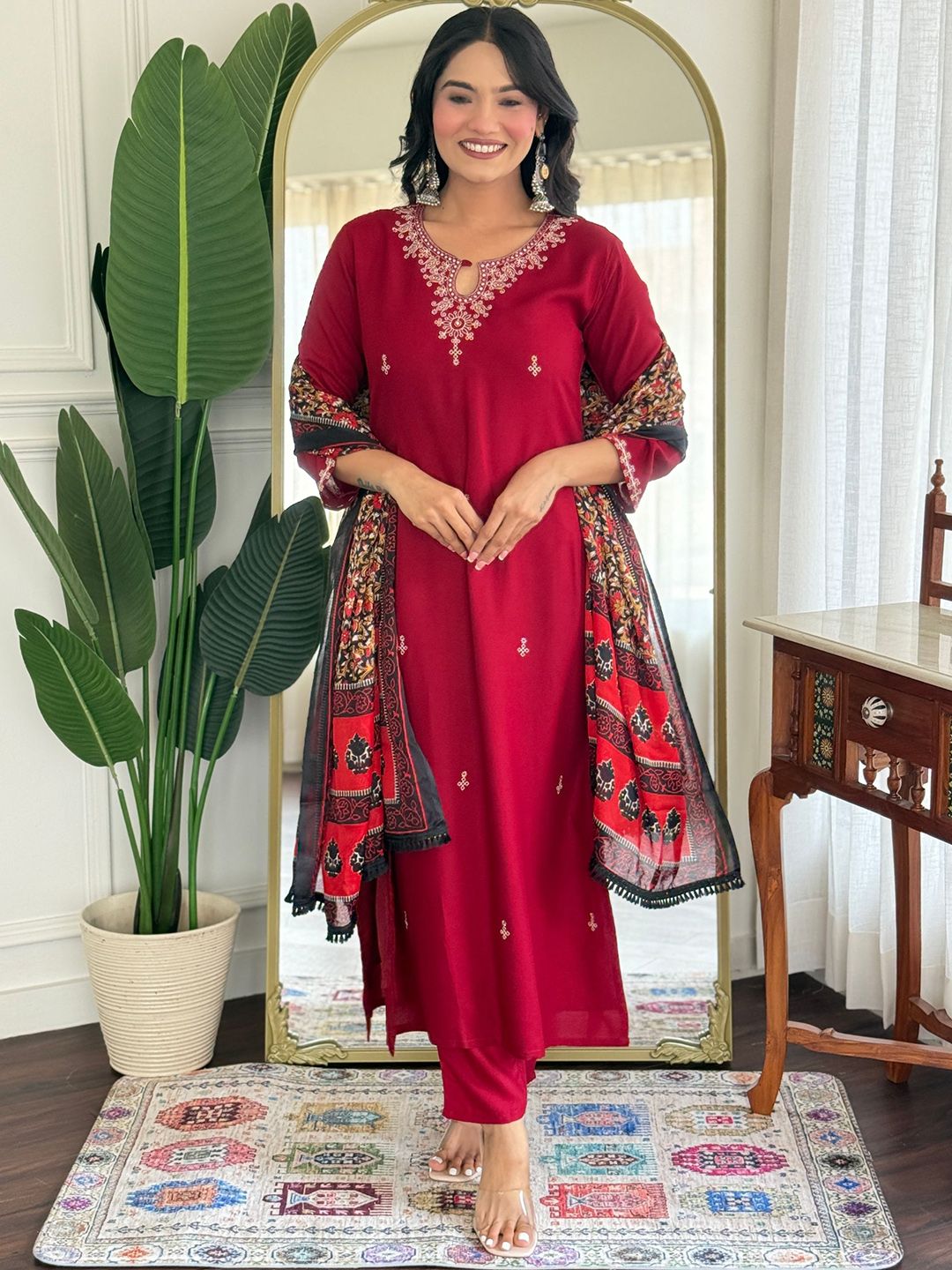 Buy this stylish KALINI Floral Embroidered Keyhole Neck Zari Straight Kurta With Trousers & Dupatta at Marincart Nepal. This product offers great quality and value. Perfect for those looking for the latest trends in fashion. Get yours now at unbeatable prices.