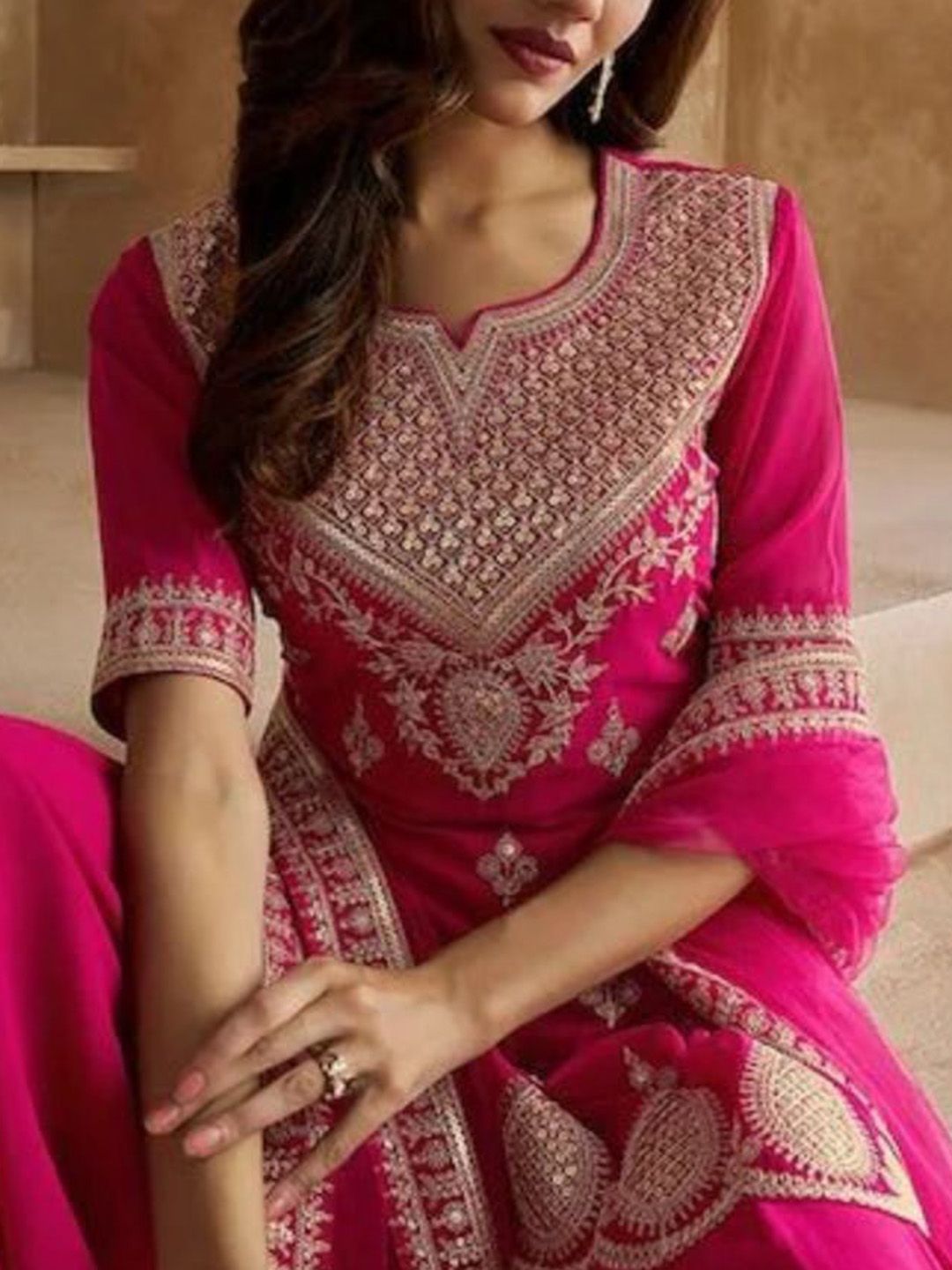 Buy this stylish KALINI Floral Embroidered Notch Neck Sequinned Georgette Kurta With Sharara & Dupatta at Marincart Nepal. This product offers great quality and value. Perfect for those looking for the latest trends in fashion. Get yours now at unbeatable prices.