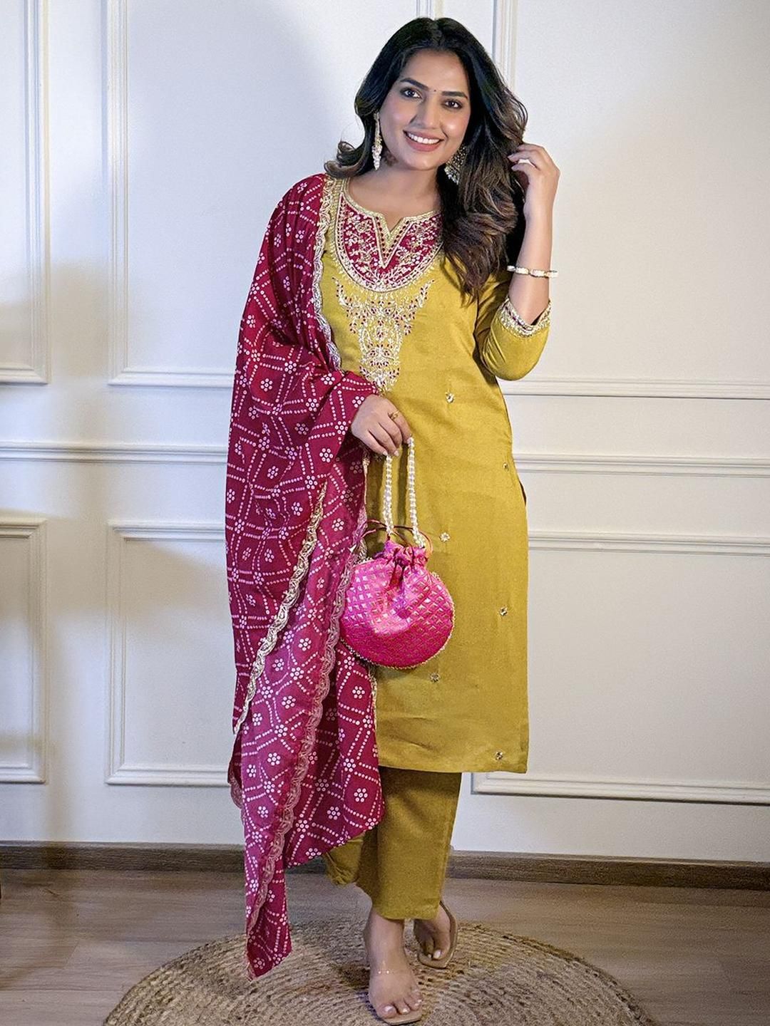 Buy this stylish KALINI Floral Embroidered Notch Neck Zari Straight Kurta With Trousers & Dupatta at Marincart Nepal. This product offers great quality and value. Perfect for those looking for the latest trends in fashion. Get yours now at unbeatable prices.