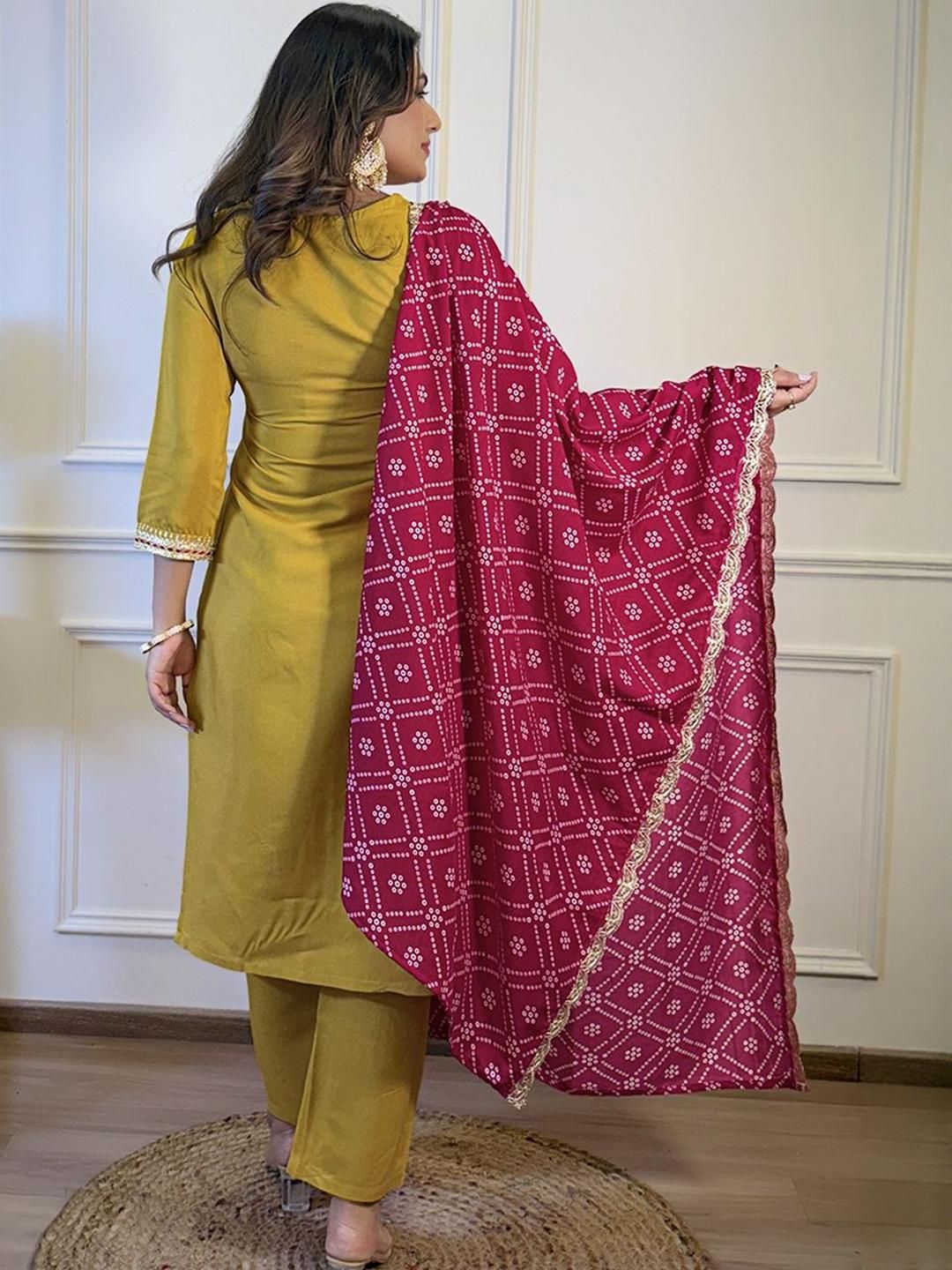 KALINI Floral Embroidered Notch Neck Zari Straight Kurta With Trousers & Dupatta