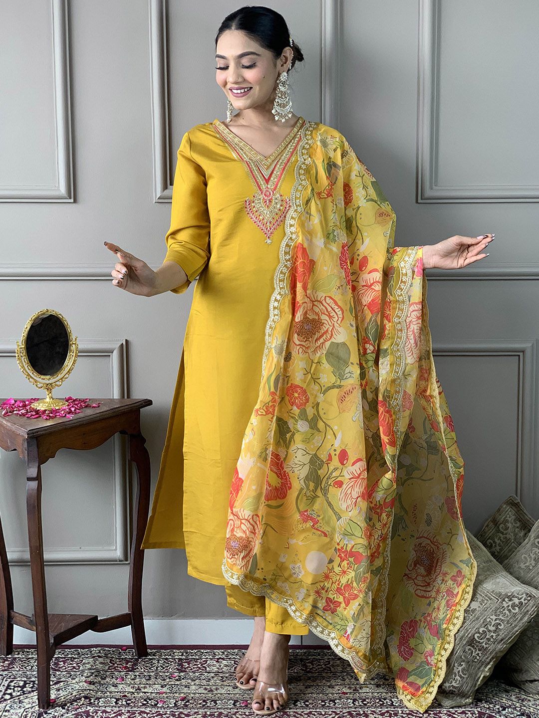 Buy this stylish KALINI Floral Embroidered Straight Thread Work Chanderi Silk Kurta With Trousers & Dupatta at Marincart Nepal. This product offers great quality and value. Perfect for those looking for the latest trends in fashion. Get yours now at unbeatable prices.