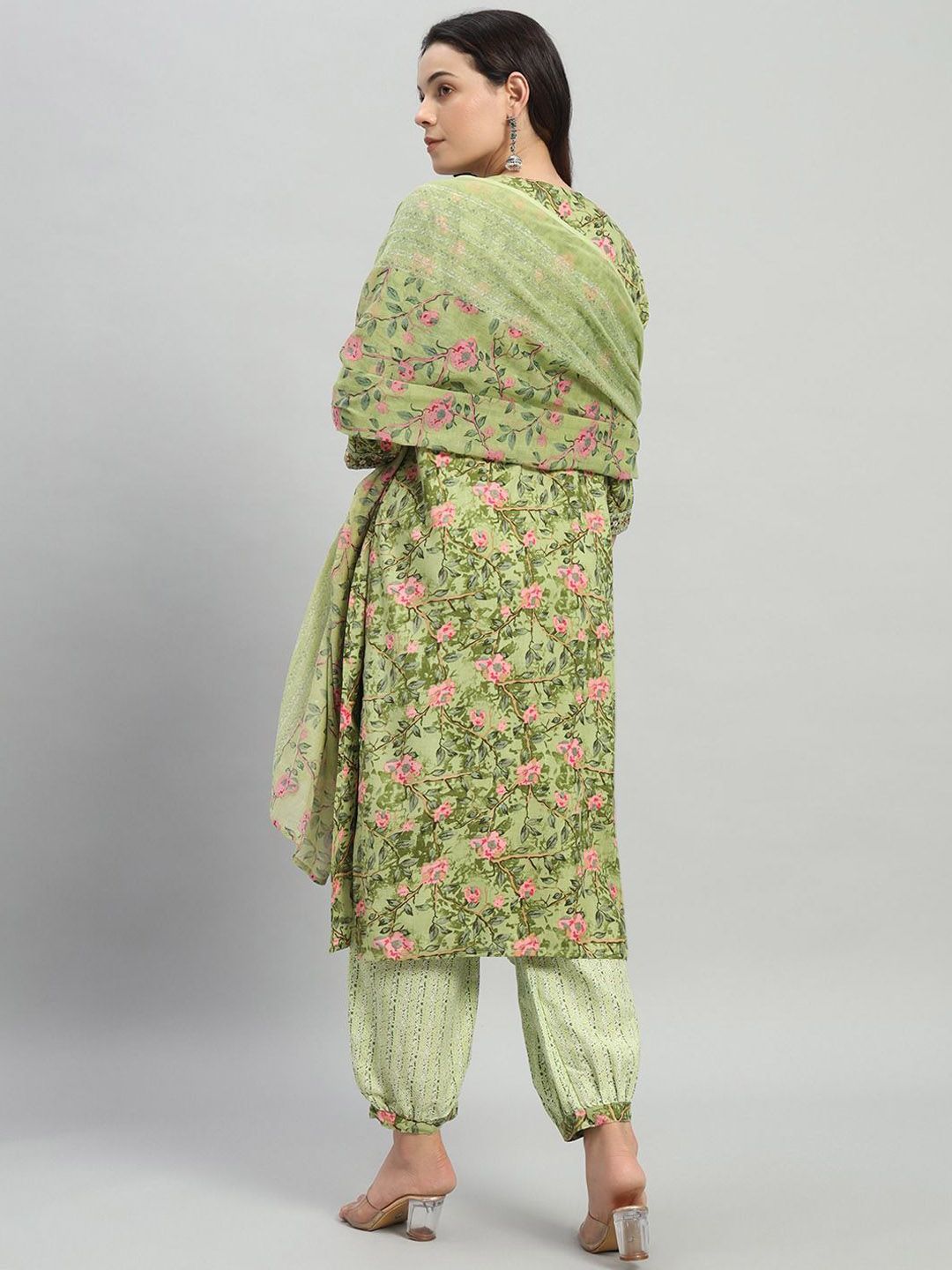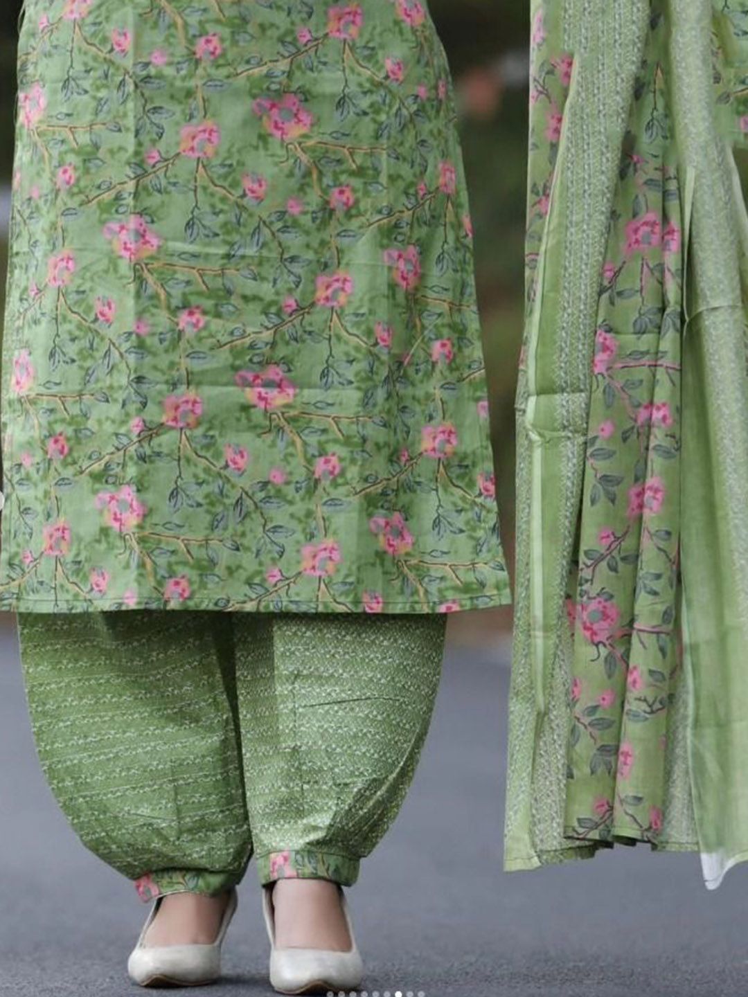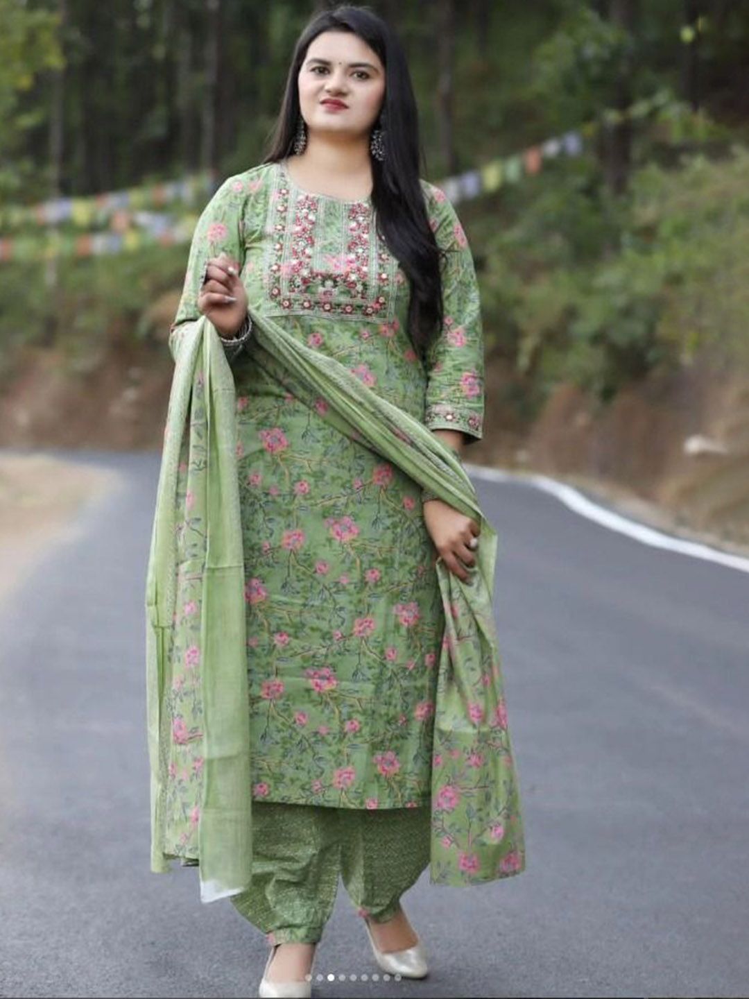 KALINI Floral Embroidered Straight Thread Work Pure Cotton Kurta With Patiala & Dupatta