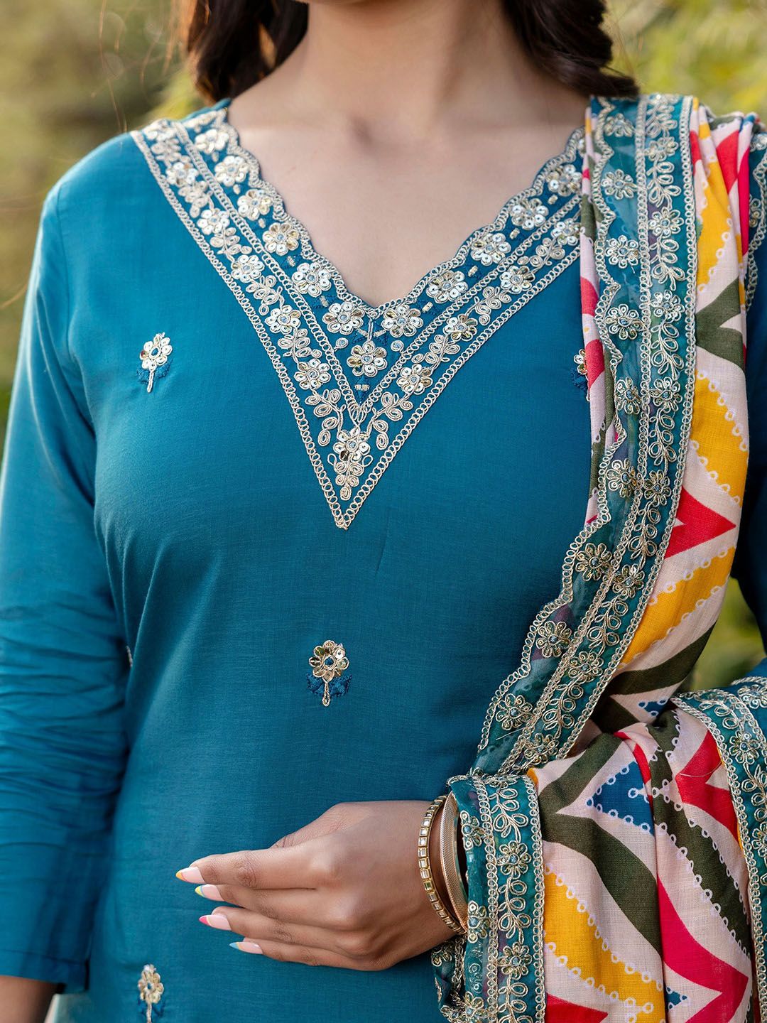 Buy this stylish KALINI Floral Embroidered Thread Work V-Neck Straight Kurta With Trousers & Dupatta at Marincart Nepal. This product offers great quality and value. Perfect for those looking for the latest trends in fashion. Get yours now at unbeatable prices.