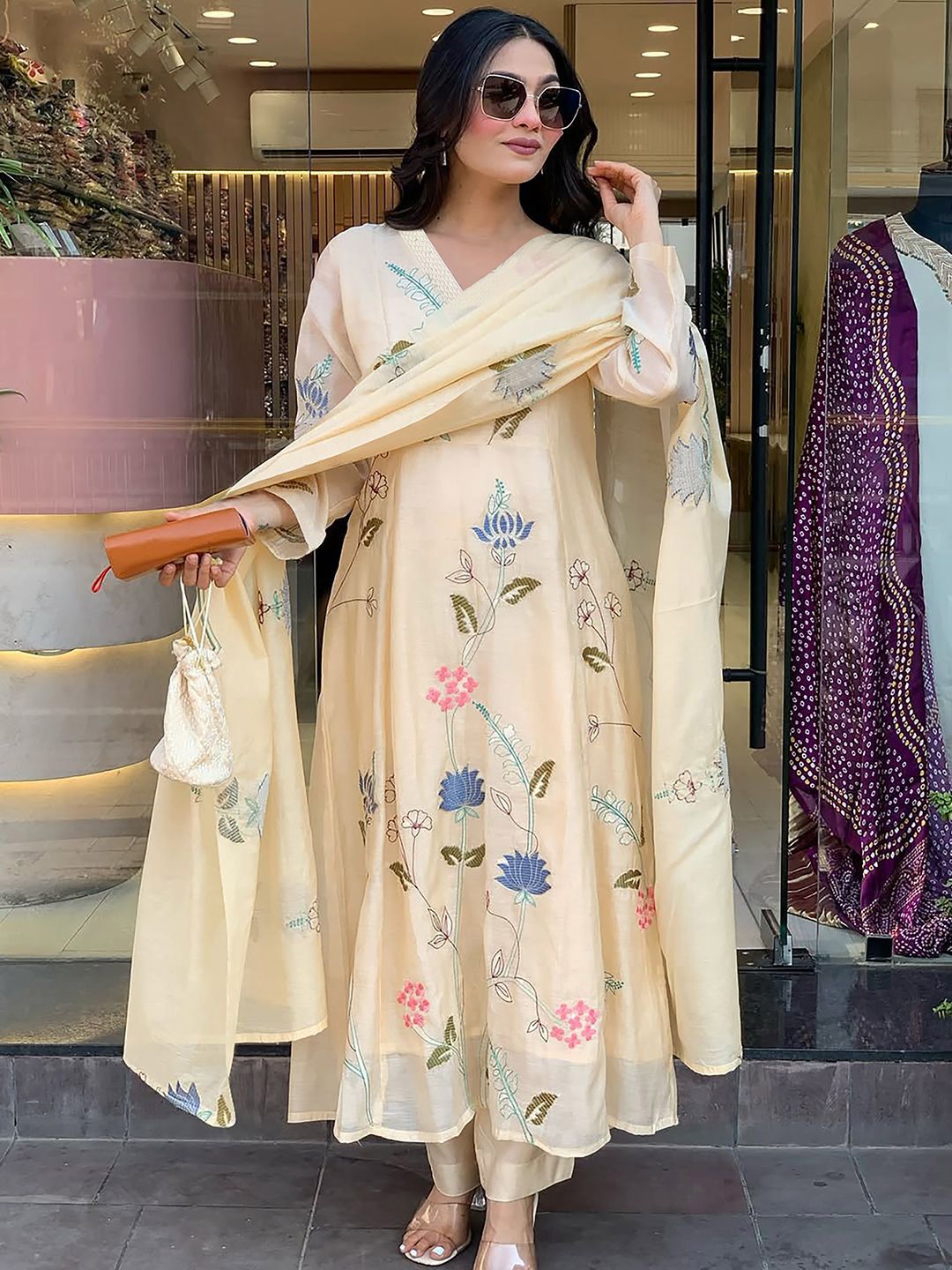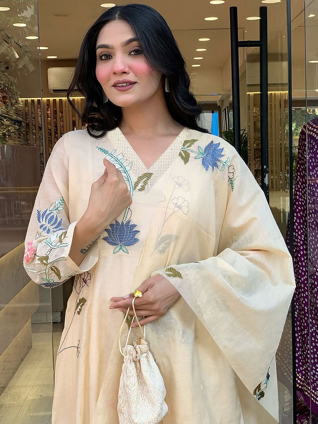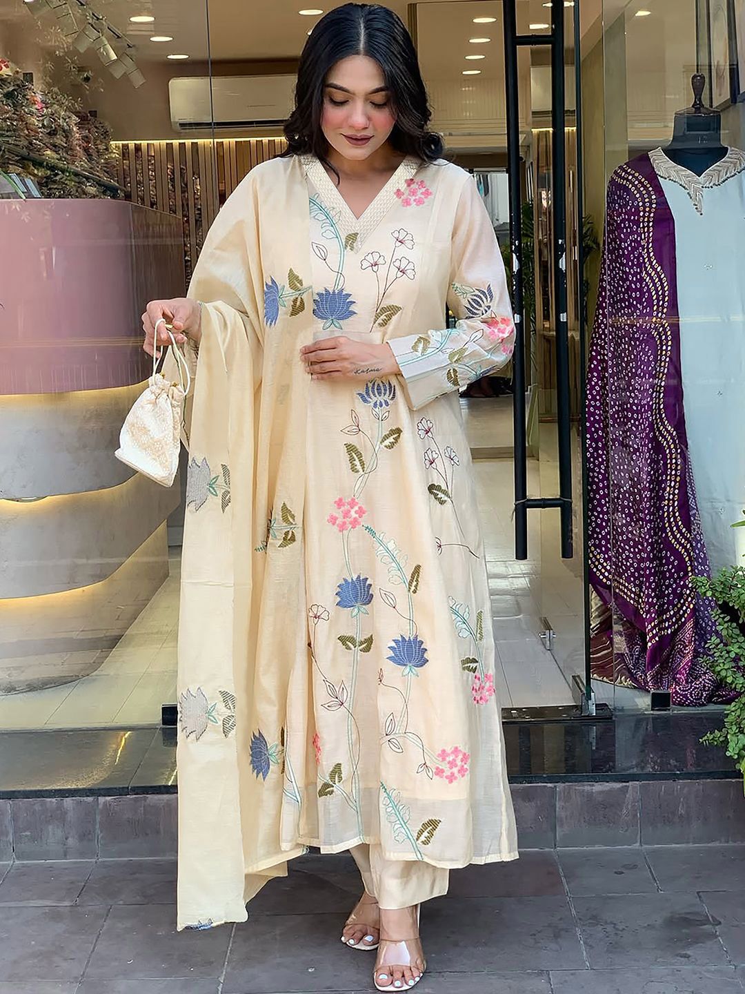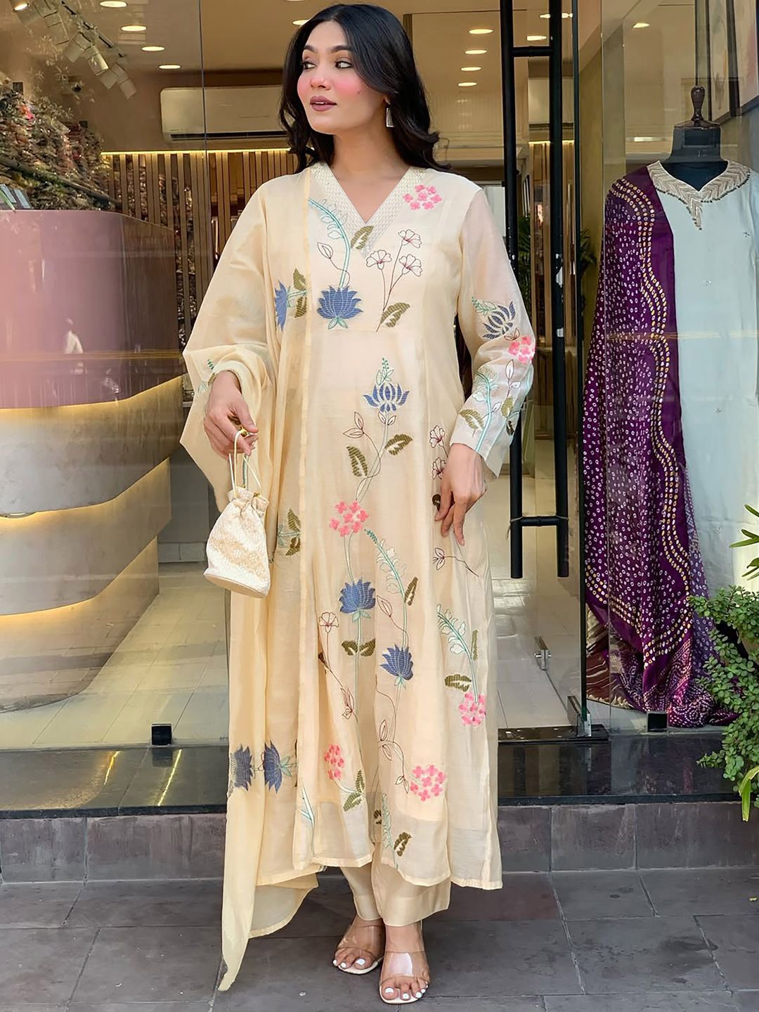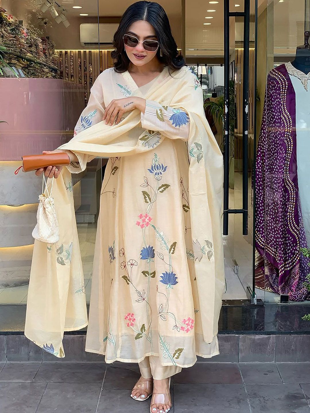 KALINI Floral Printed A-Line Kurta With Trouser & Dupatta