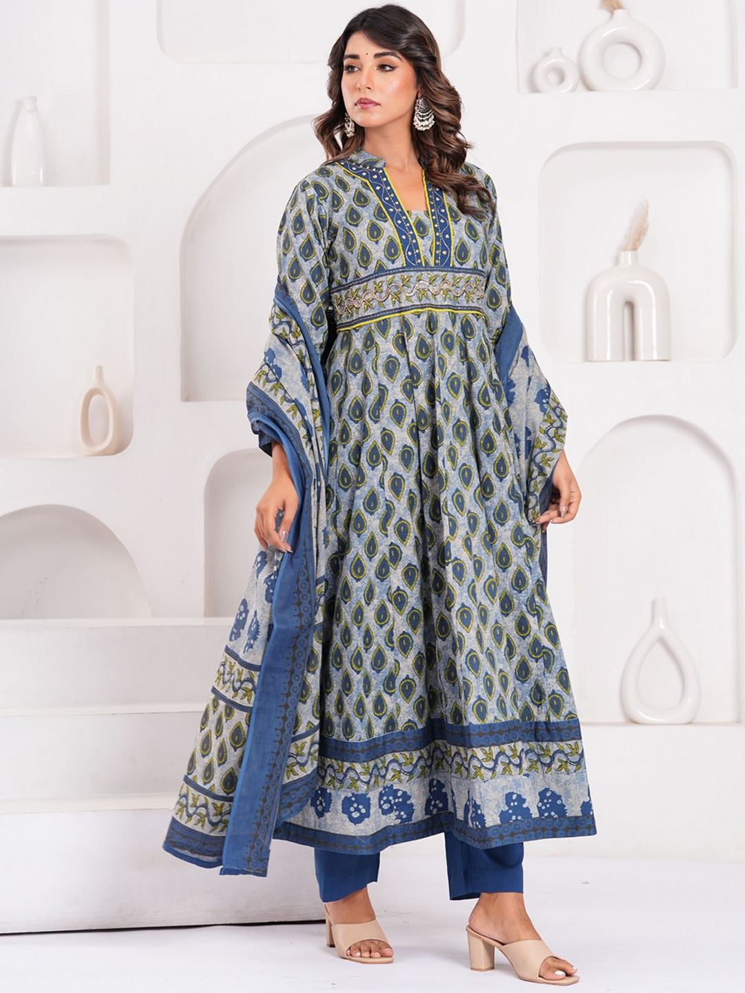 Buy this stylish KALINI Floral Printed Anarkali Beads and Stones Pure Cotton Kurta With Trouser & Dupatta at Marincart Nepal. This product offers great quality and value. Perfect for those looking for the latest trends in fashion. Get yours now at unbeatable prices.