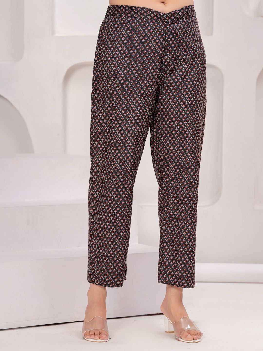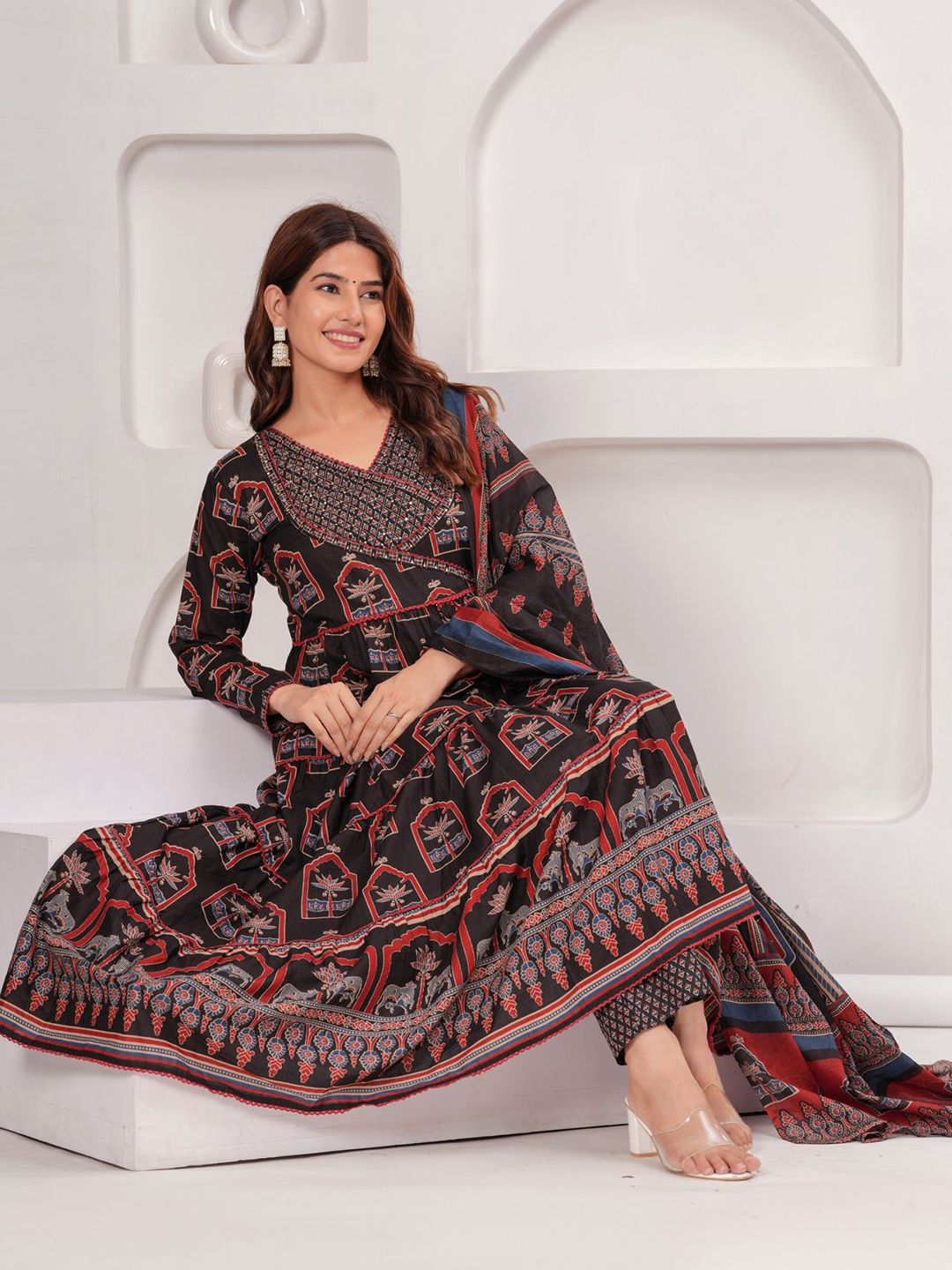 KALINI Floral Printed Angrakha Beads & Stones Pure Cotton Anarkali Kurta With Trouser
