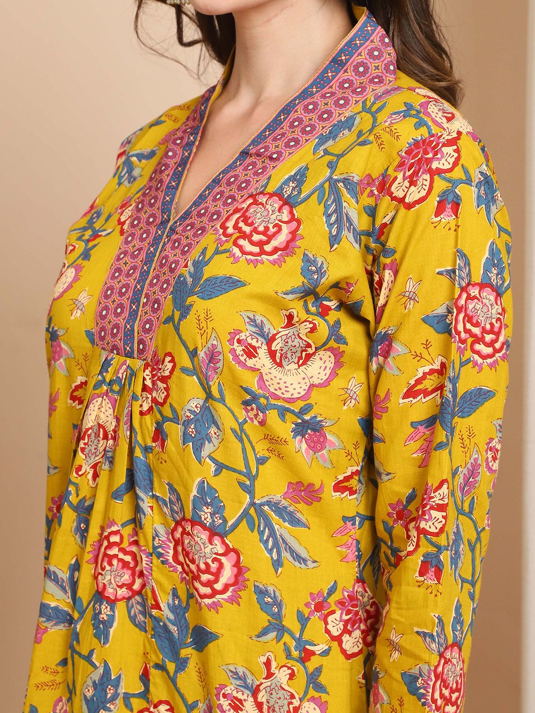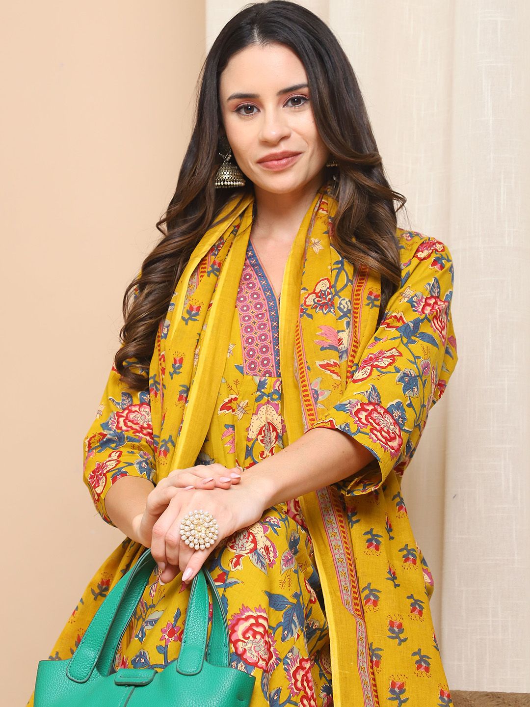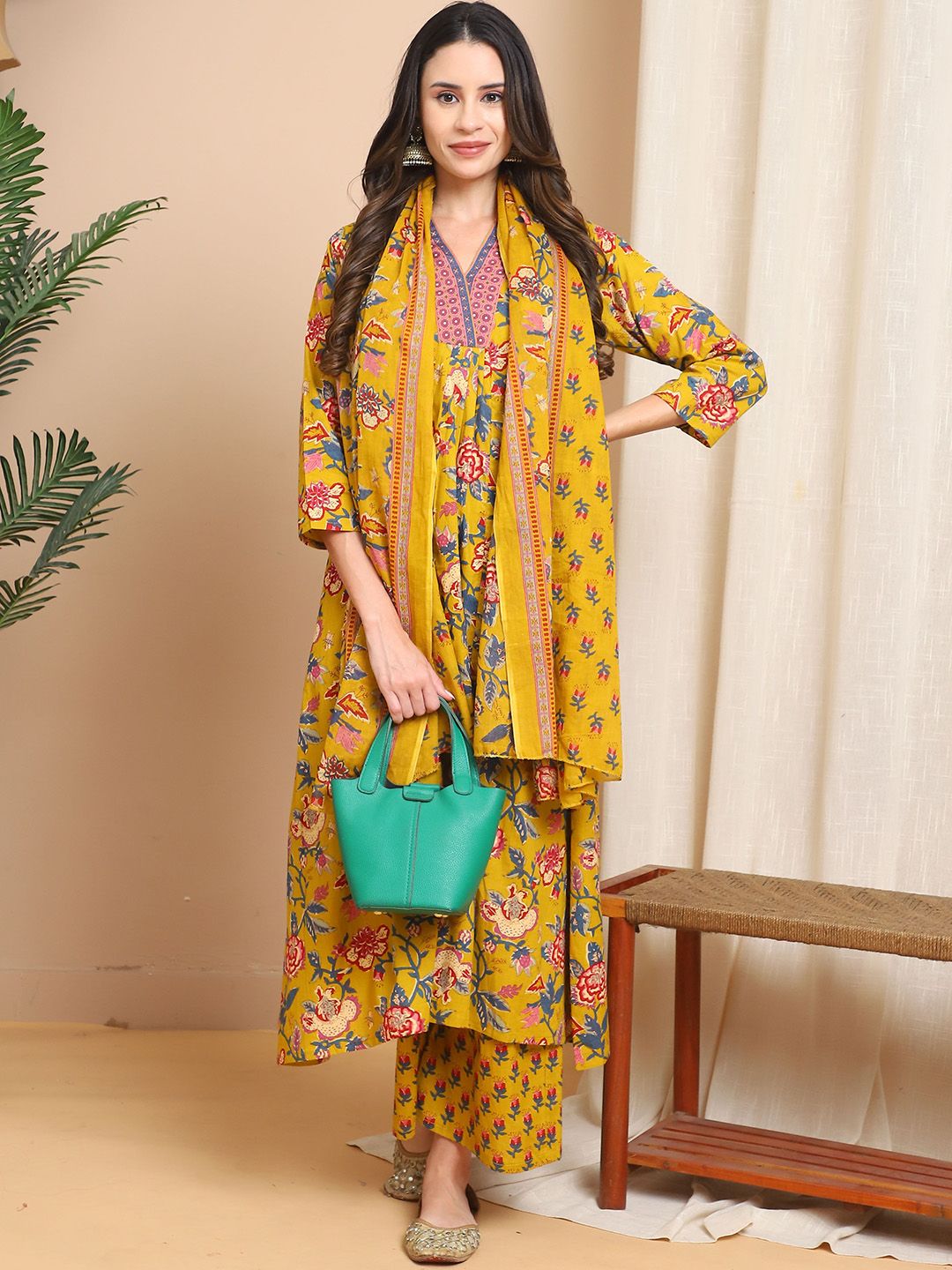 Buy this stylish KALINI Floral Printed Pure Cotton V-Neck A-Line Kurta With Palazzos & Dupatta at Marincart Nepal. This product offers great quality and value. Perfect for those looking for the latest trends in fashion. Get yours now at unbeatable prices.