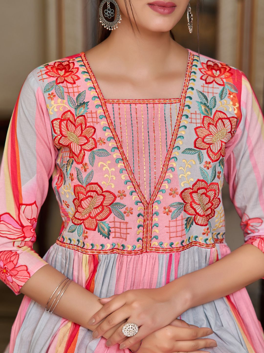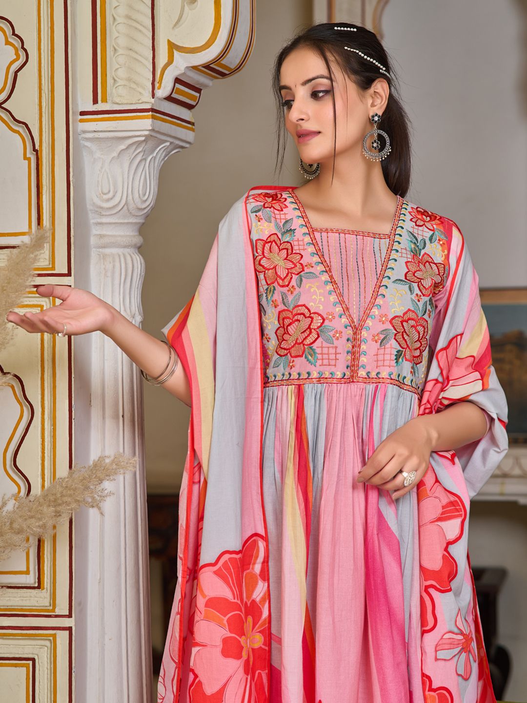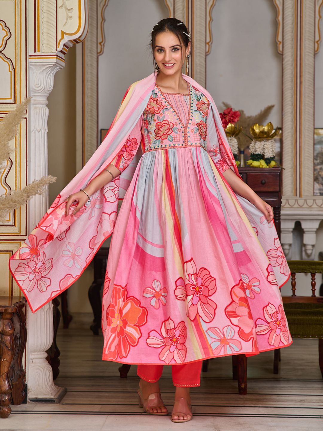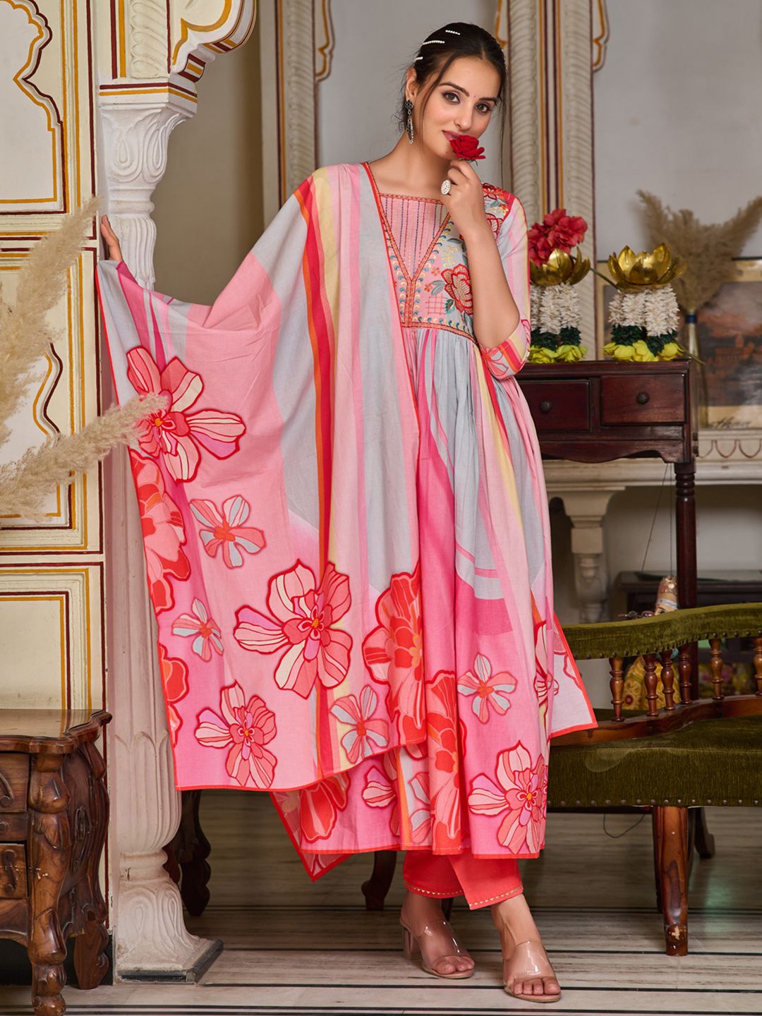 Buy this stylish KALINI Floral Printed Square Neck Thread Work A-Line Kurta & Trousers With Dupatta at Marincart Nepal. This product offers great quality and value. Perfect for those looking for the latest trends in fashion. Get yours now at unbeatable prices.