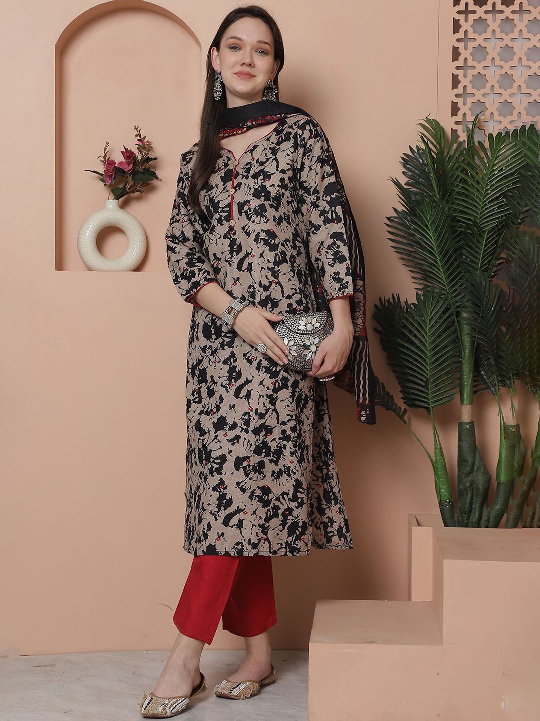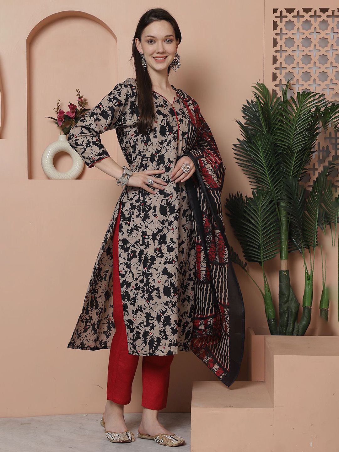 KALINI Floral Printed Sweetheart Neck Kurta With Trousers & Dupatta