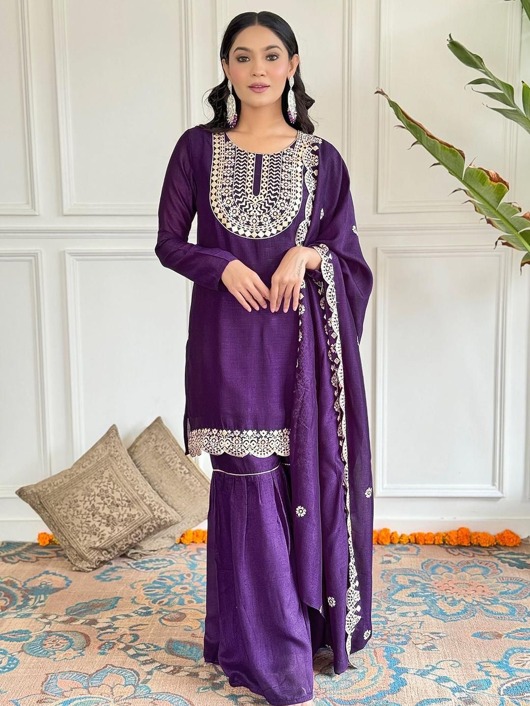 Buy this stylish KALINI Floral Yoke Design Round Neck Thread Work Straight Kurta With Sharara & Dupatta at Marincart Nepal. This product offers great quality and value. Perfect for those looking for the latest trends in fashion. Get yours now at unbeatable prices.