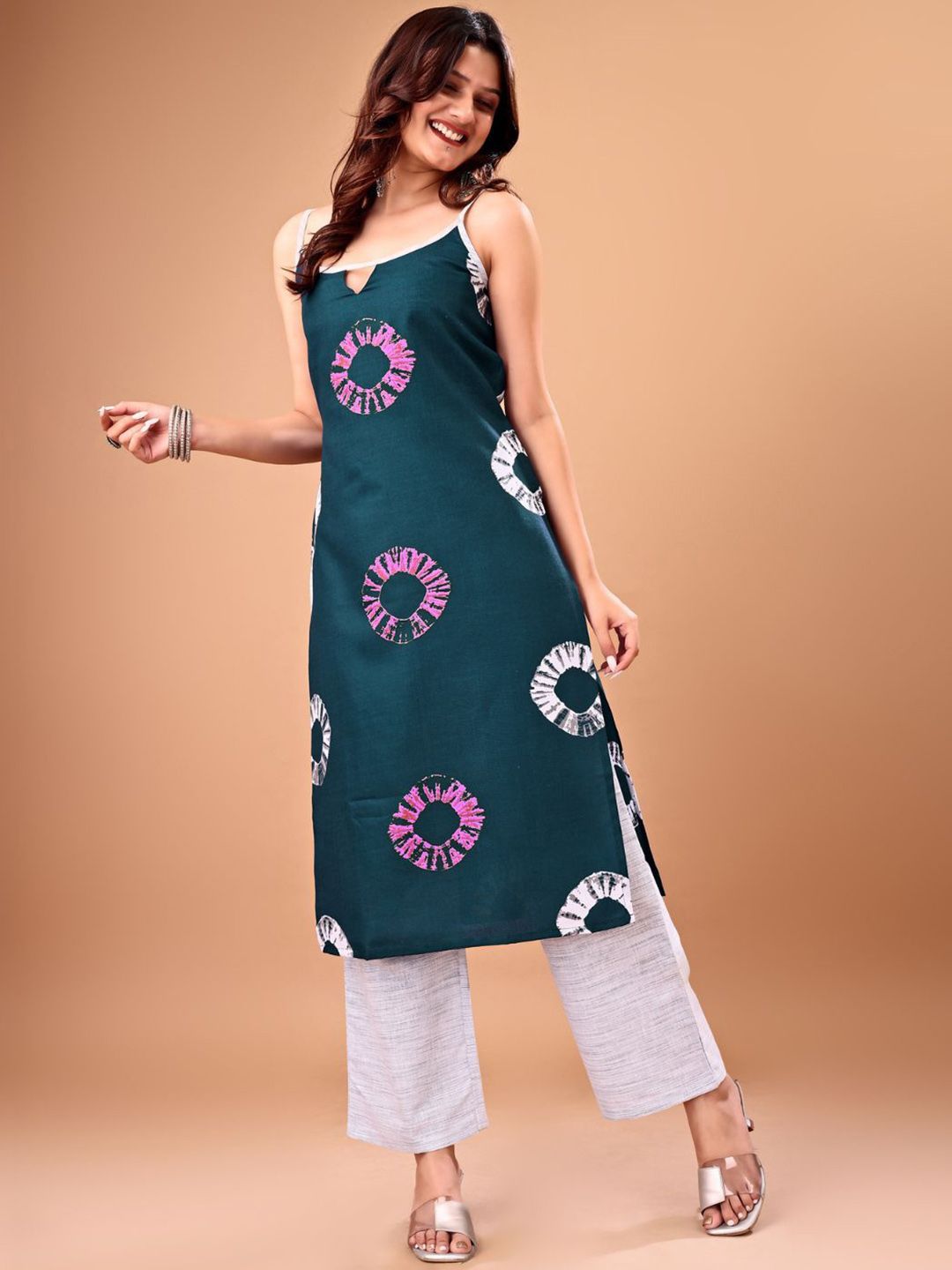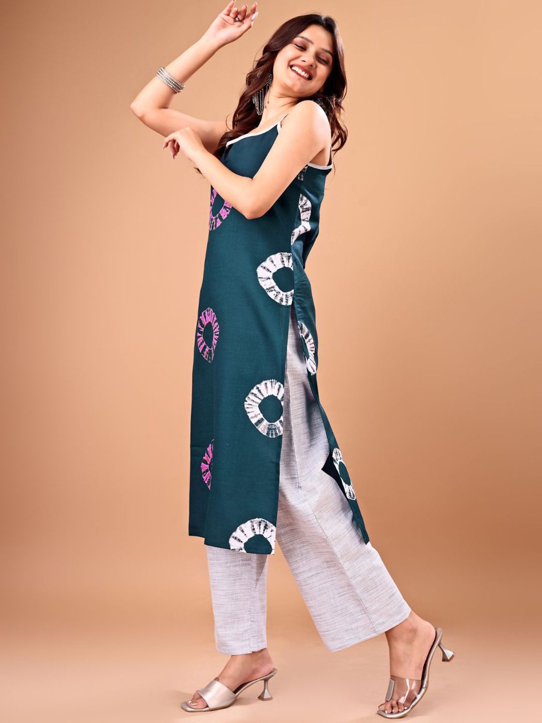 KALINI Geometric Printed Shoulder Strap Straight Kurta With Palazzos
