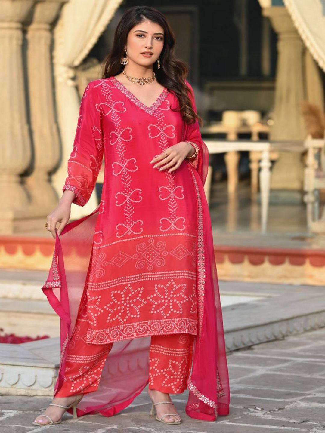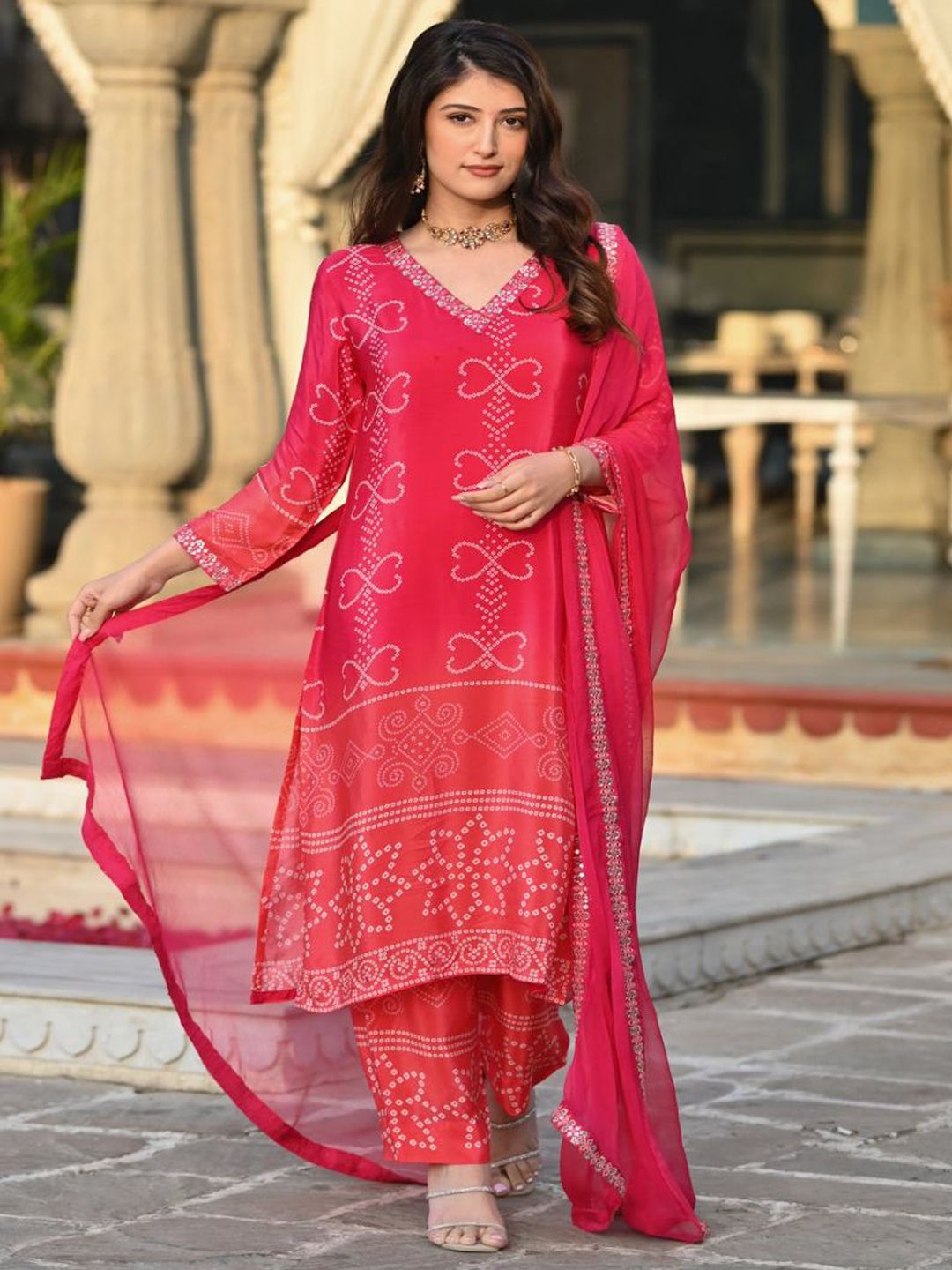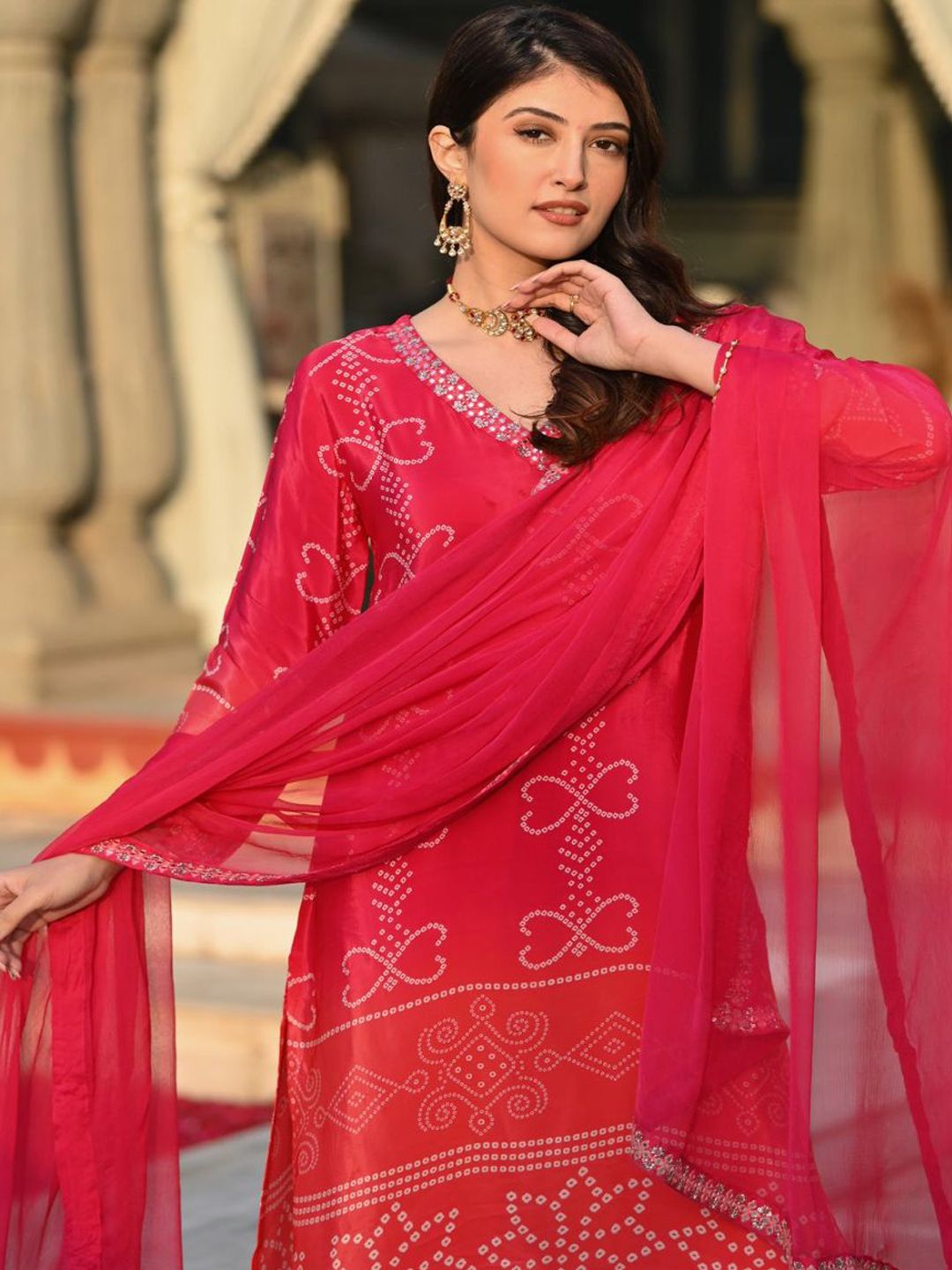 Buy this stylish KALINI Women Bandhani Embroidered Regular Mirror Work Kurta & Trousers With Dupatta at Marincart Nepal. This product offers great quality and value. Perfect for those looking for the latest trends in fashion. Get yours now at unbeatable prices.