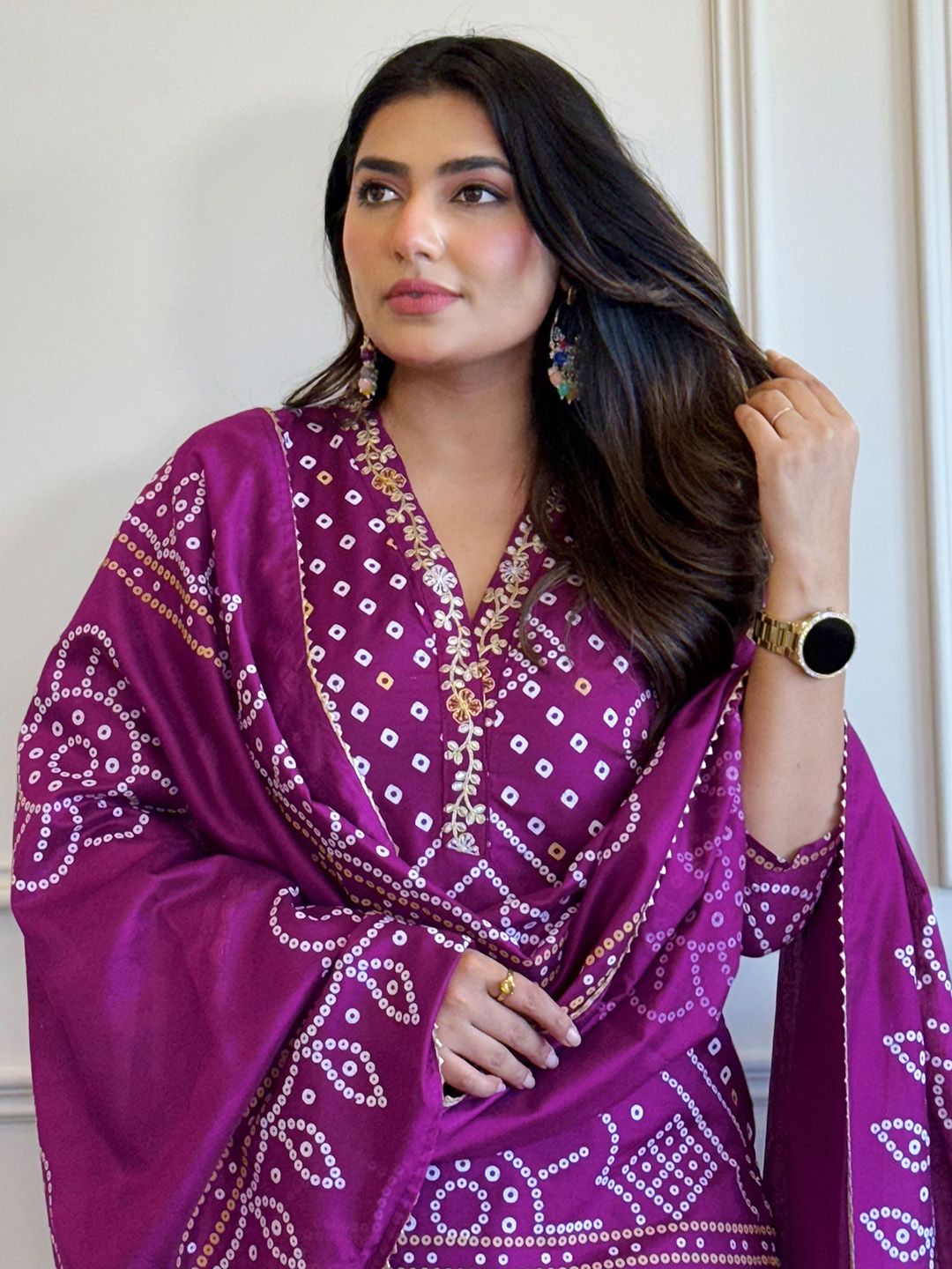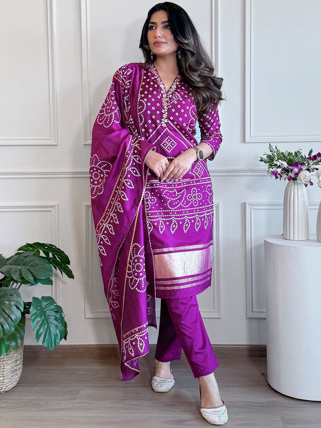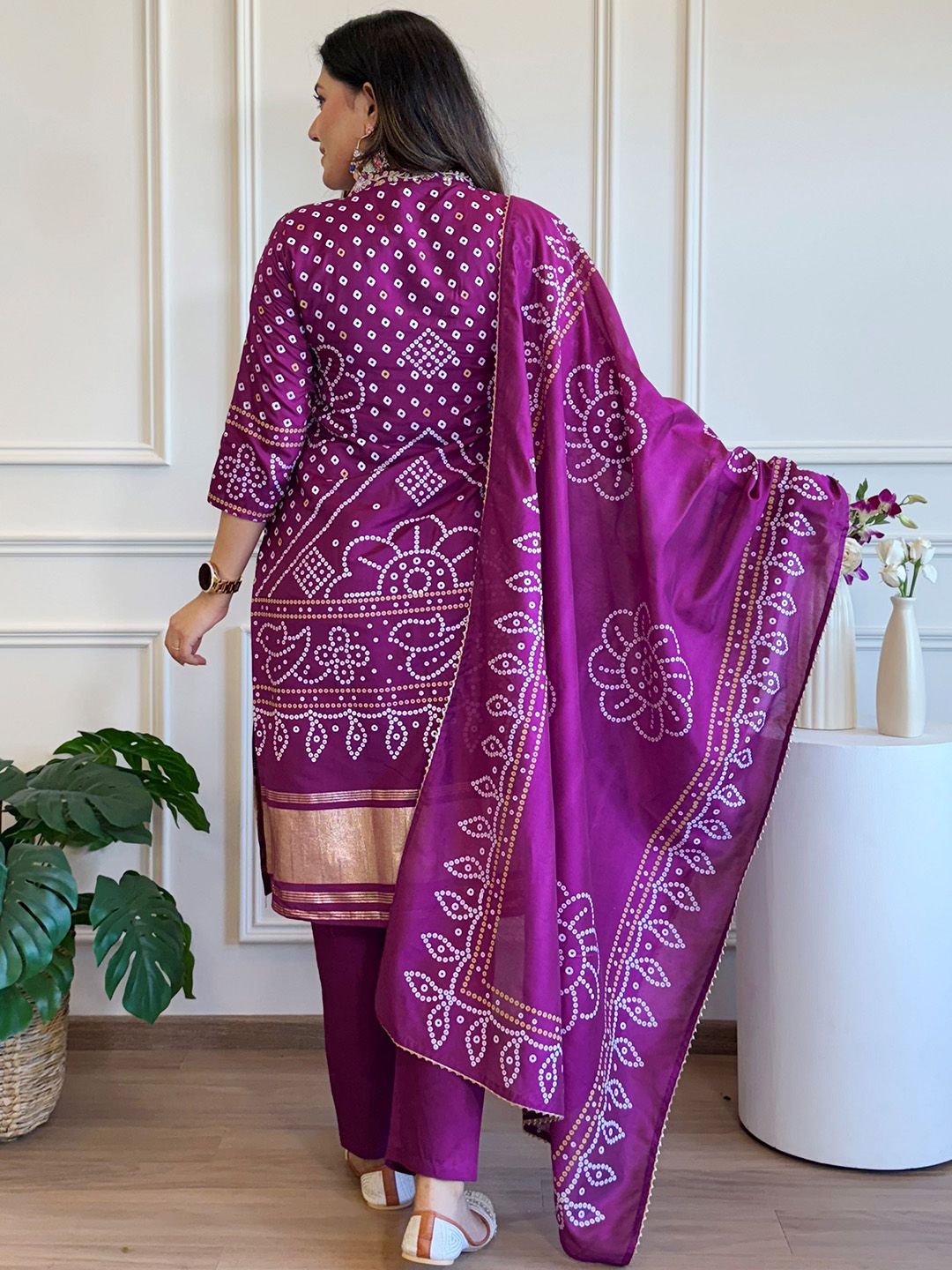 KALINI Women Bandhani Printed Kurta with Trousers & Dupatta