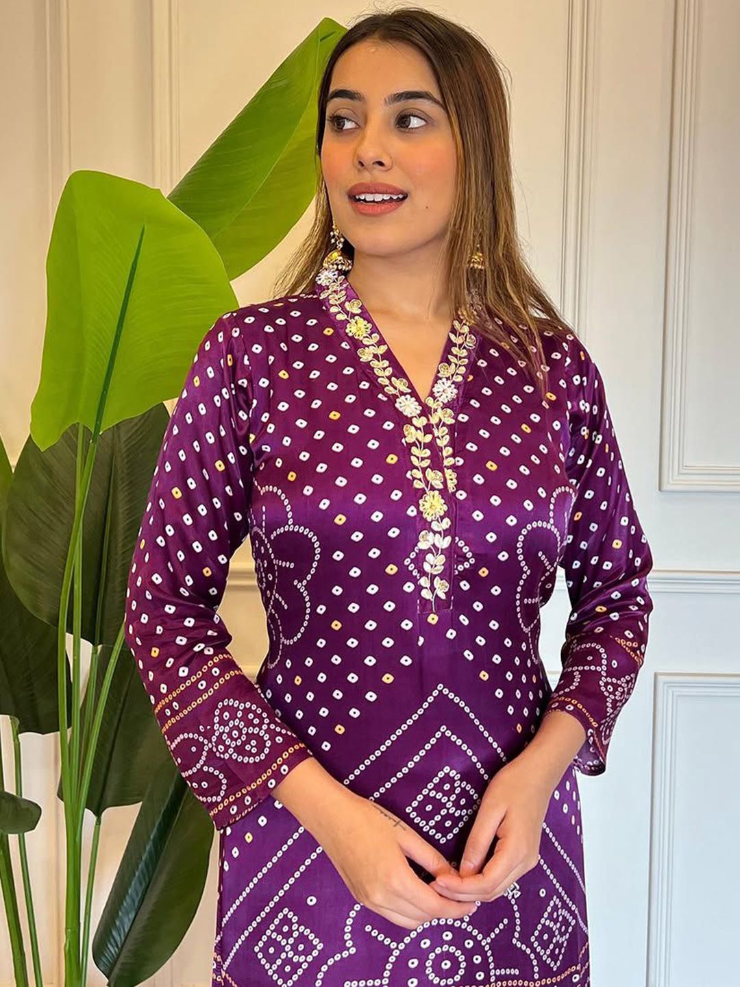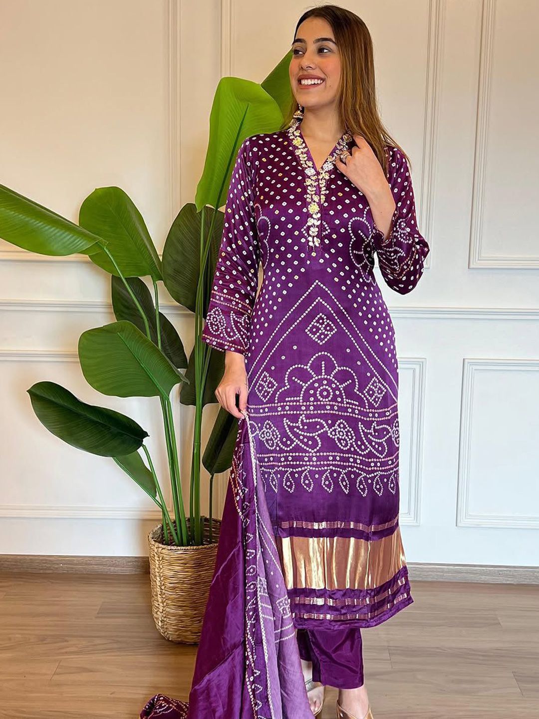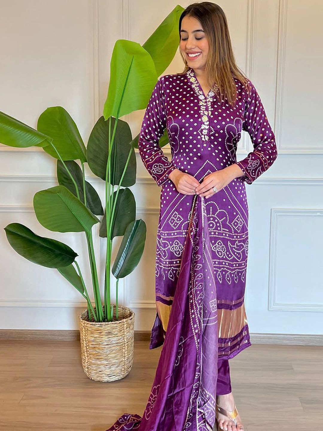 KALINI Women Bandhani Printed Kurta with Trousers & Dupatta