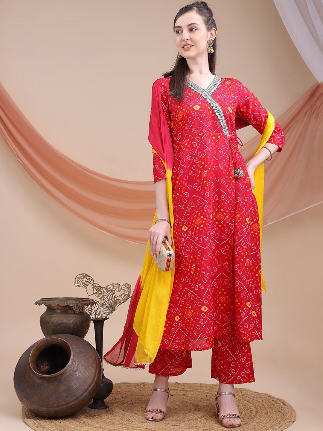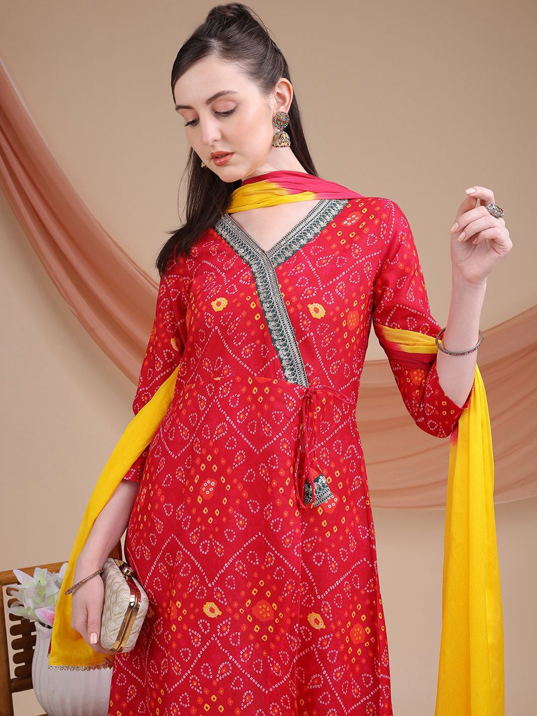 KALINI Women Bandhani Printed V-Neck Angrakha Kurta Set