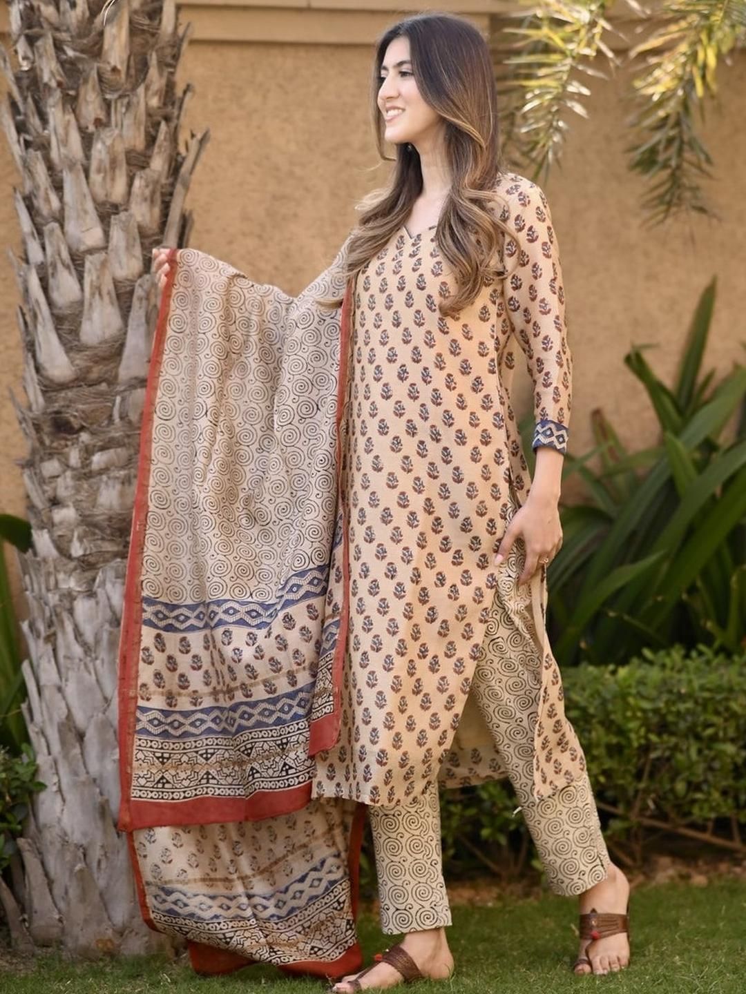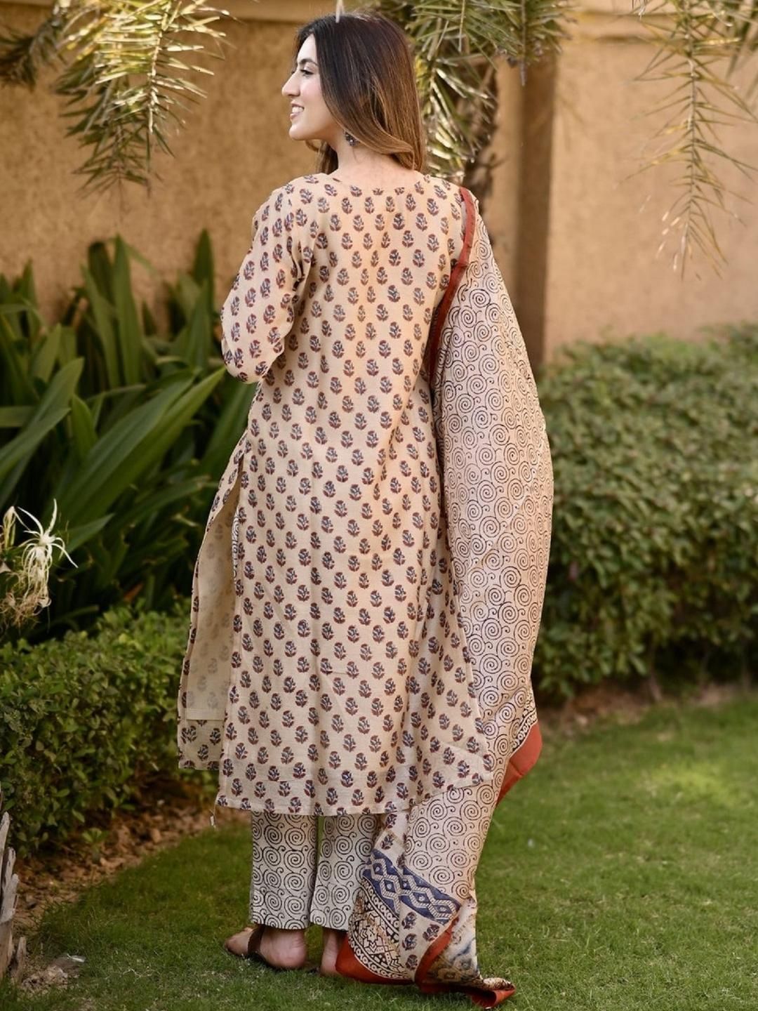 KALINI Women Beige Viscose Rayon Printed Kurta Sets
