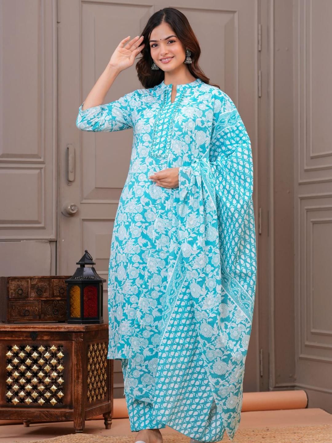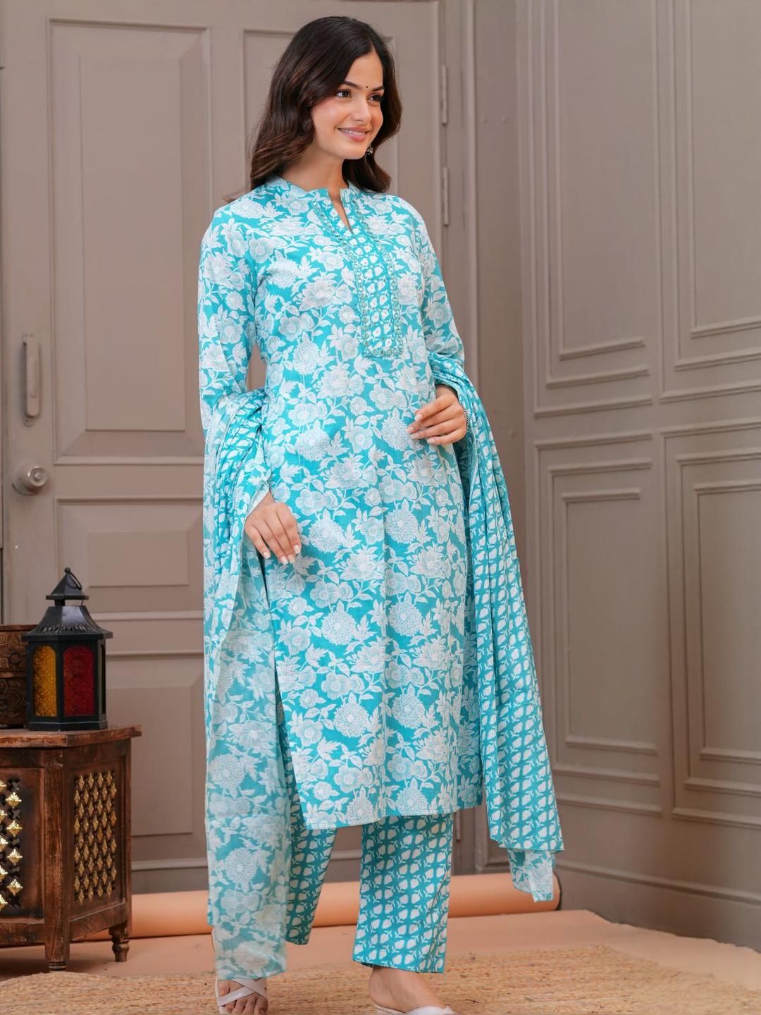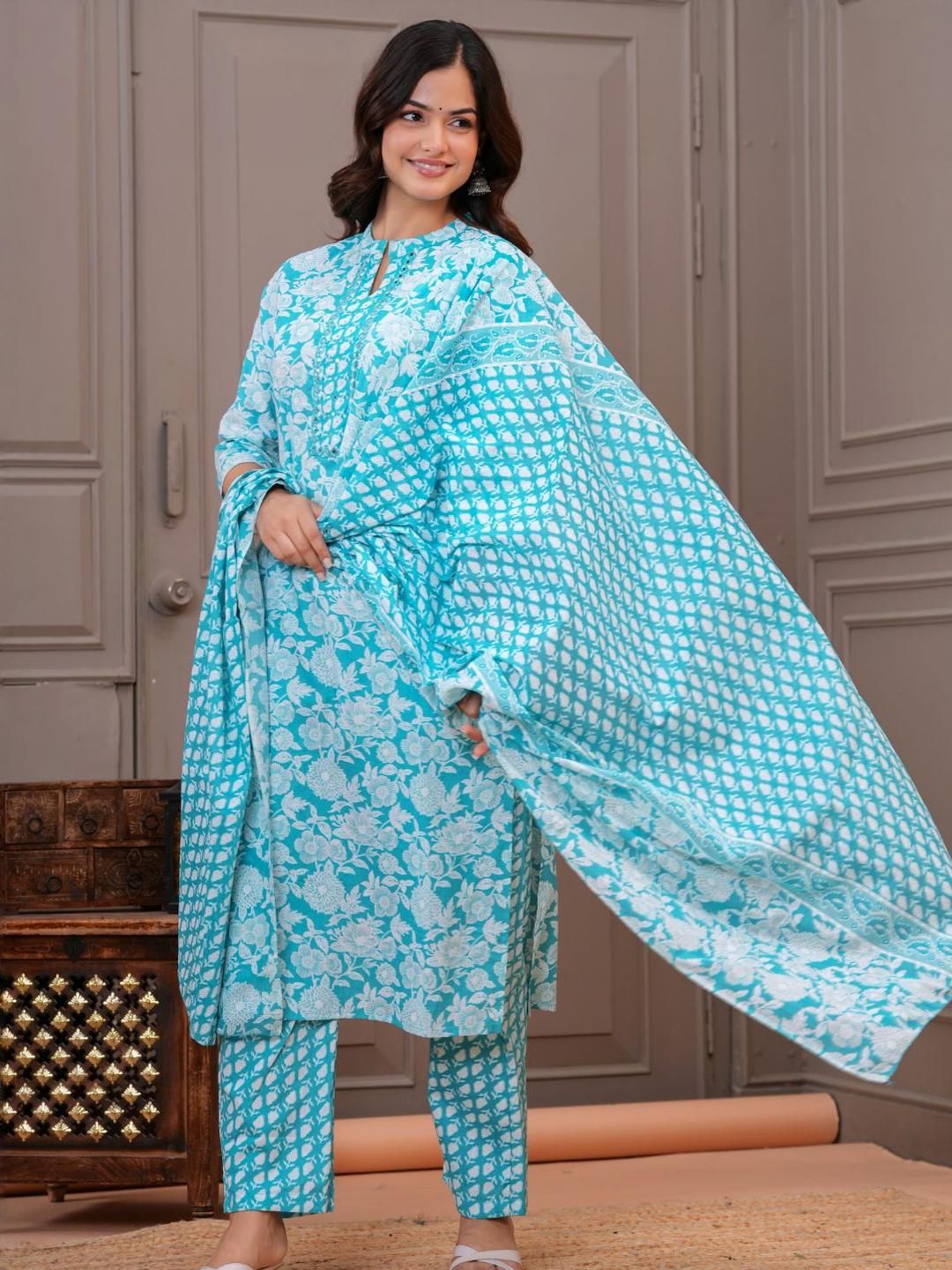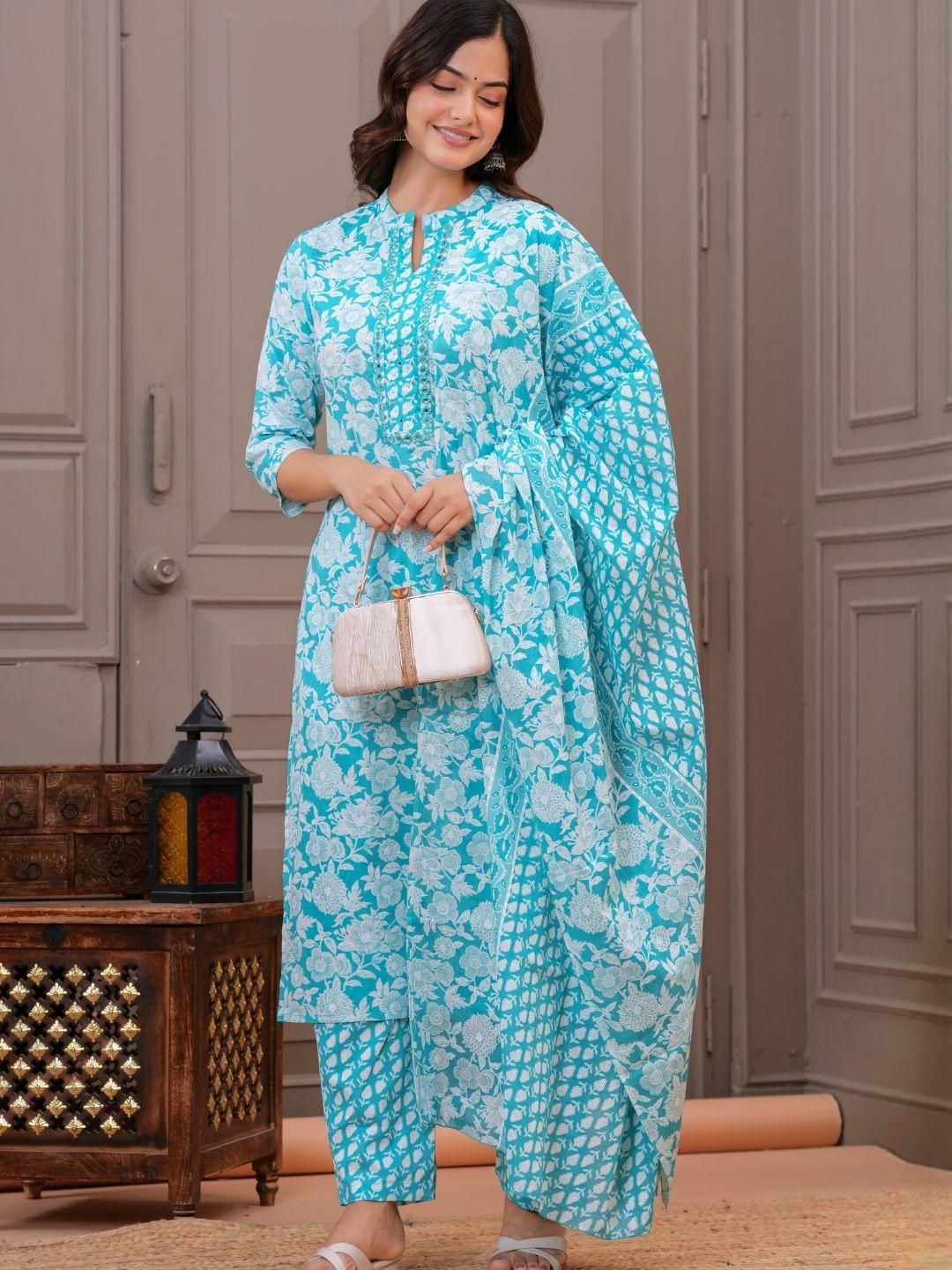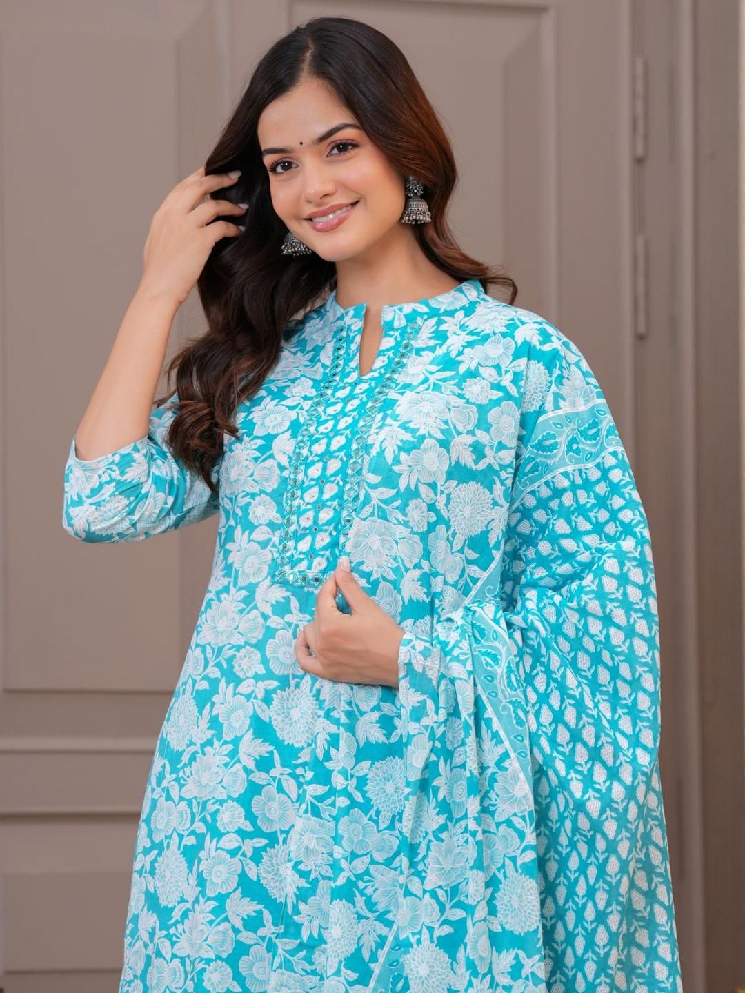 KALINI Women Blue Pure Cotton Kurta Sets With Dupatta