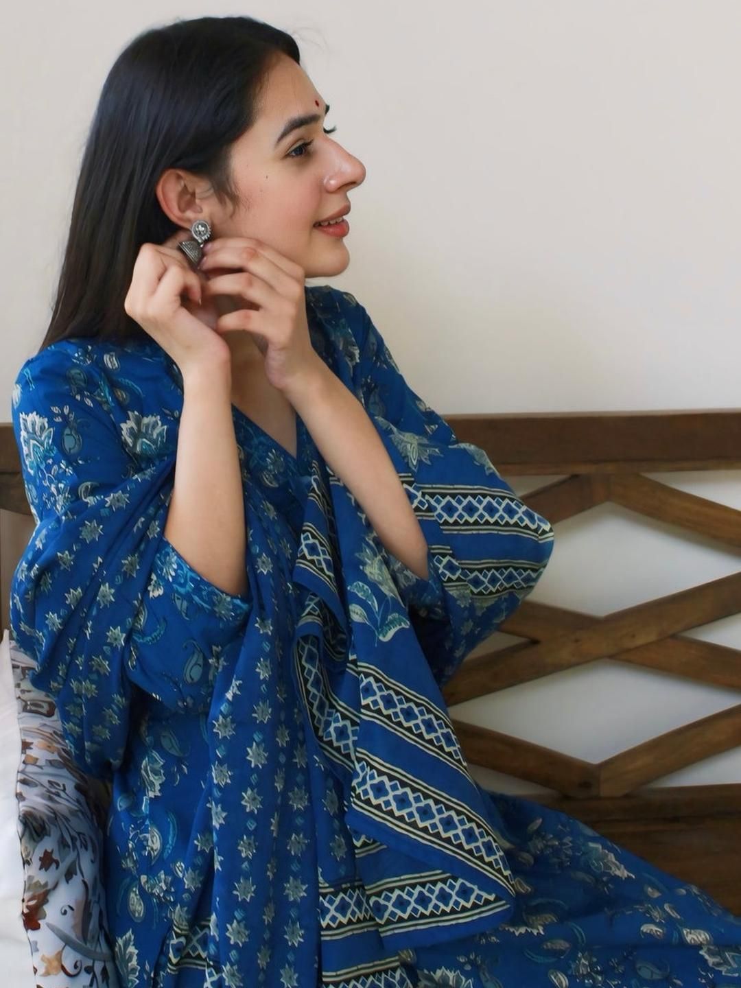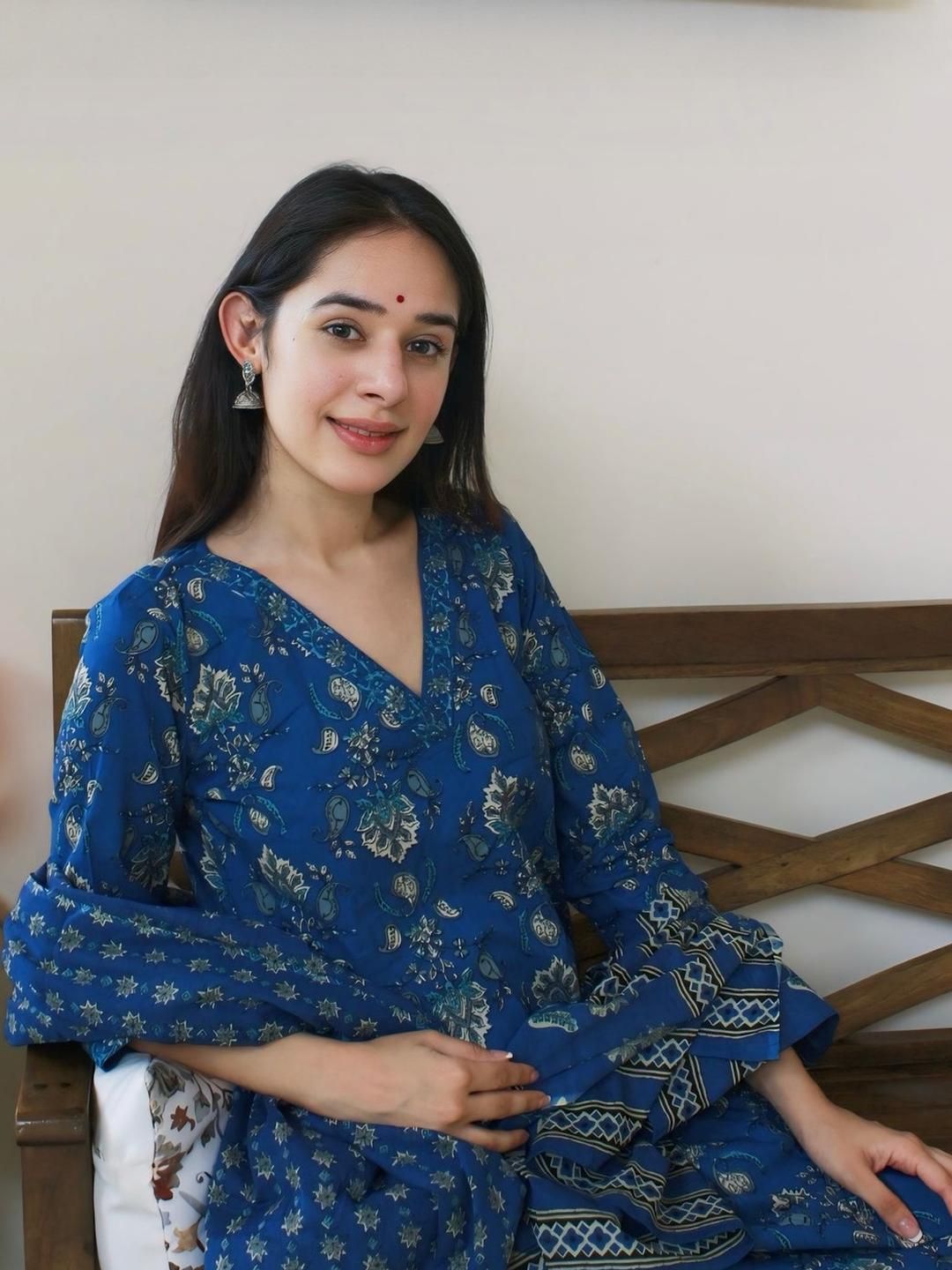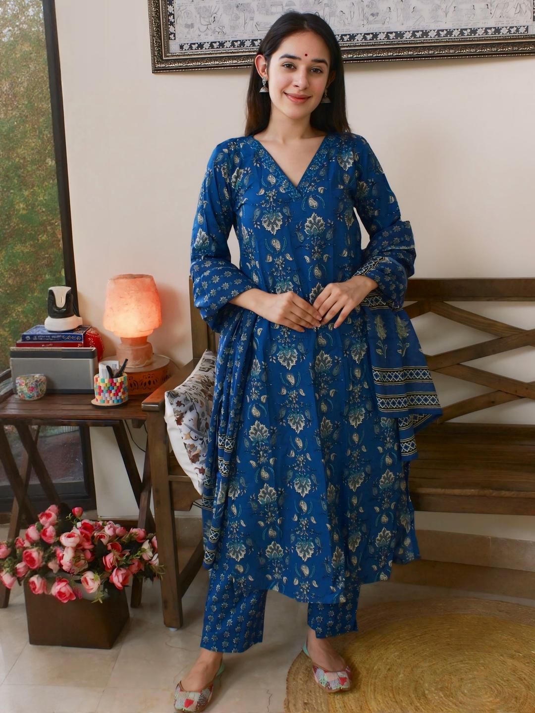 KALINI Women Blue Viscose Rayon Printed Kurta Sets