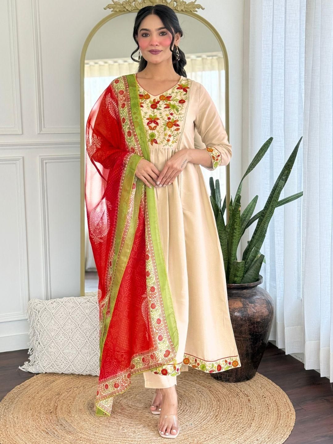 KALINI Women Embroidered A-Line Kurta Set
