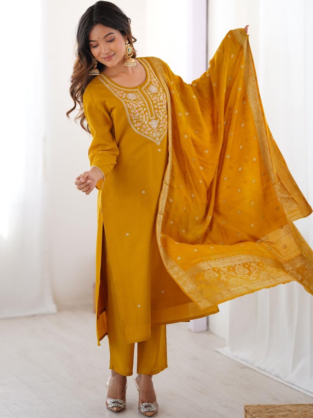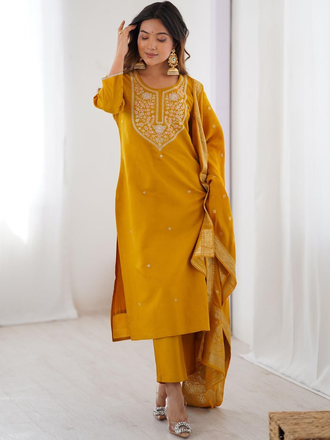 KALINI Women Embroidered A-Line Kurta Set