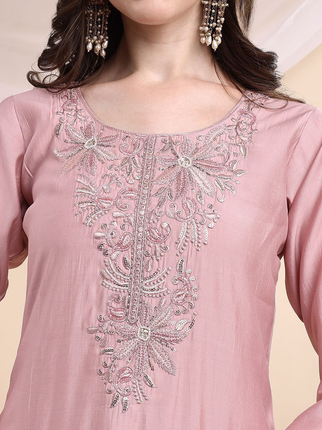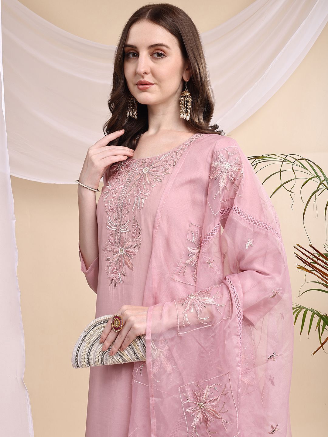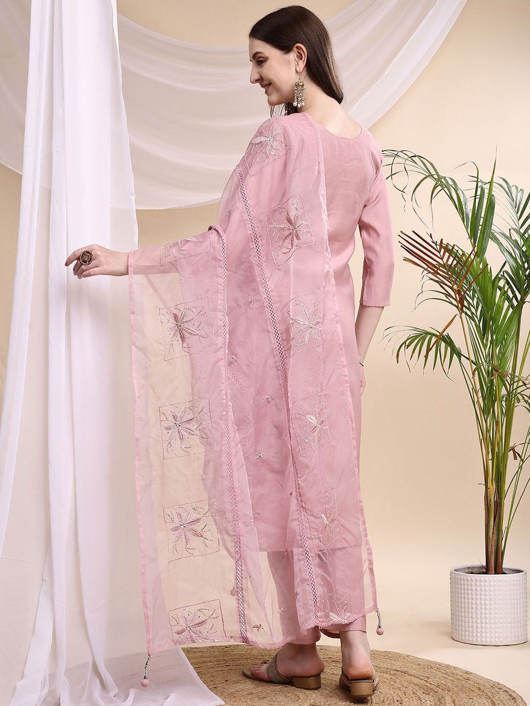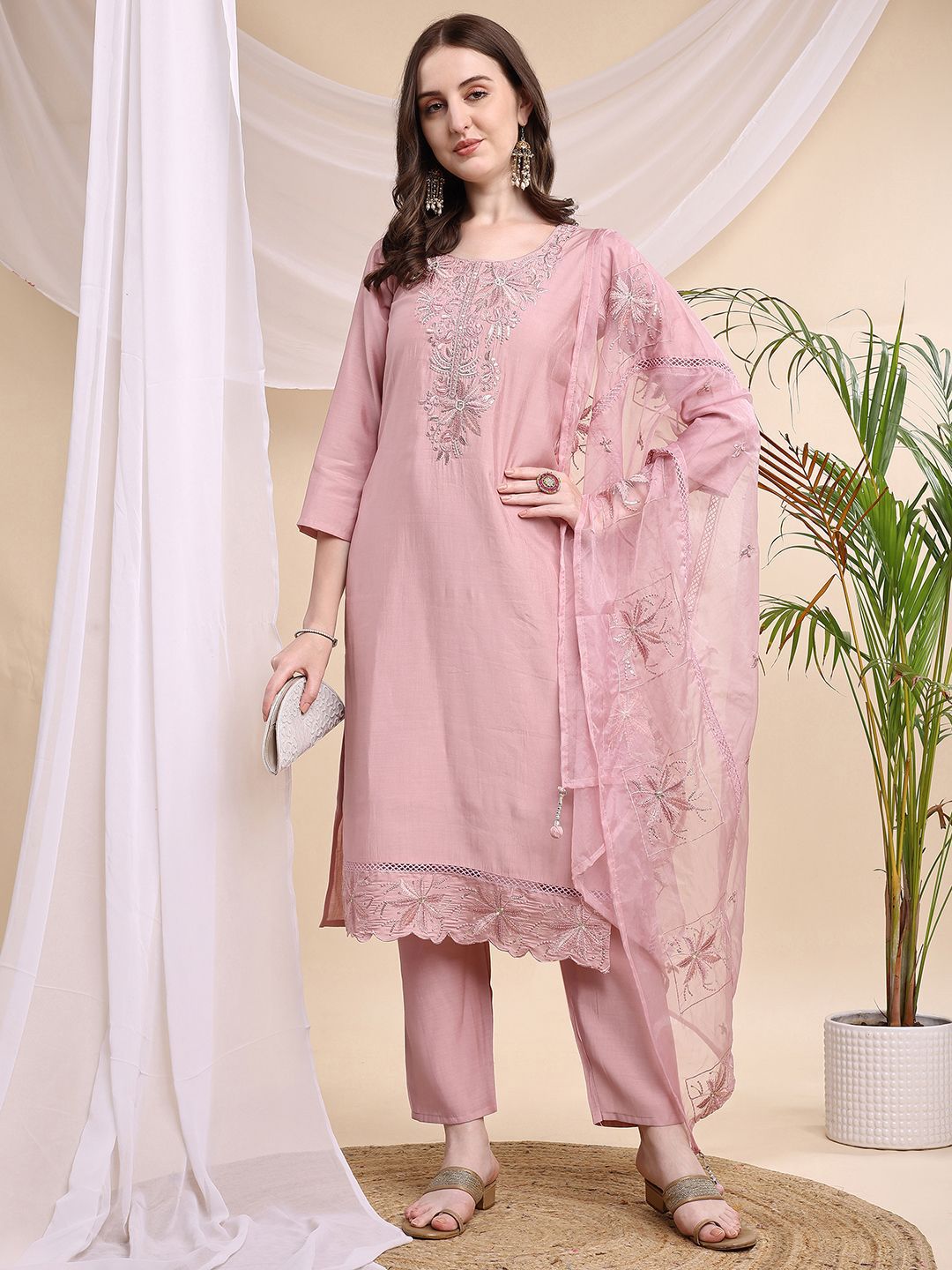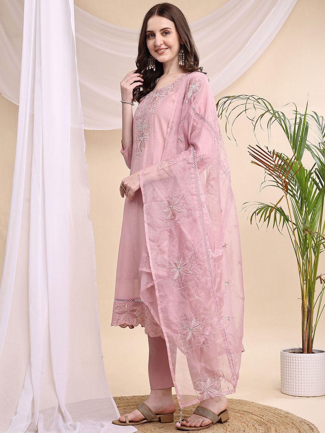 KALINI Women Embroidered Chanderi Silk Kurta with Trousers & Dupatta Kurta Sets