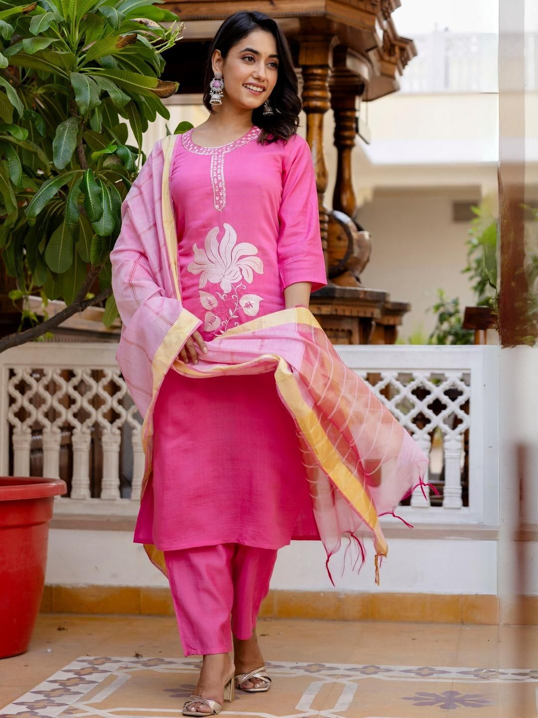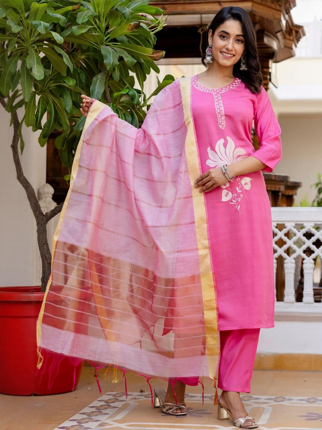 KALINI Women Embroidered Kurta with Trousers & With Dupatta