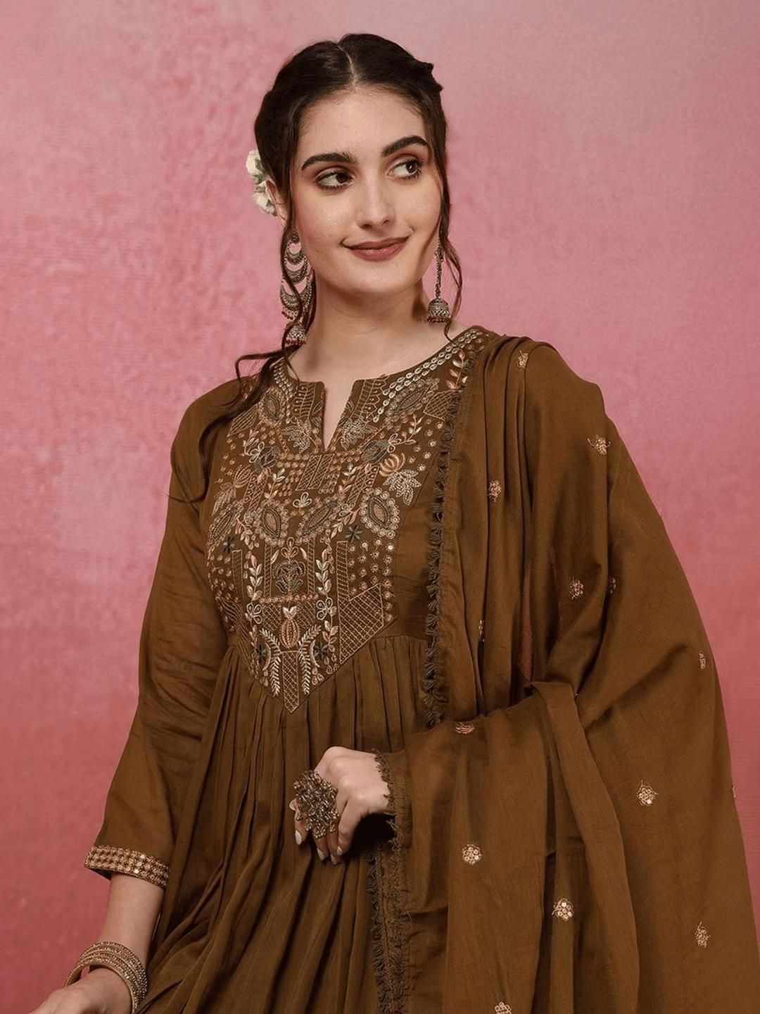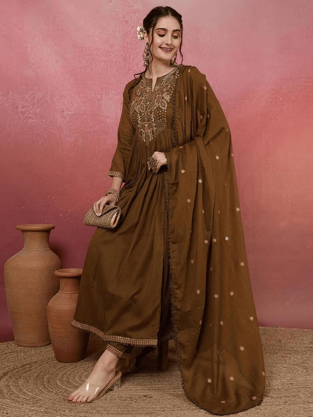 Buy this stylish KALINI Women Embroidered Regular Chanderi Silk Kurta with Trousers & With Dupatta at Marincart Nepal. This product offers great quality and value. Perfect for those looking for the latest trends in fashion. Get yours now at unbeatable prices.