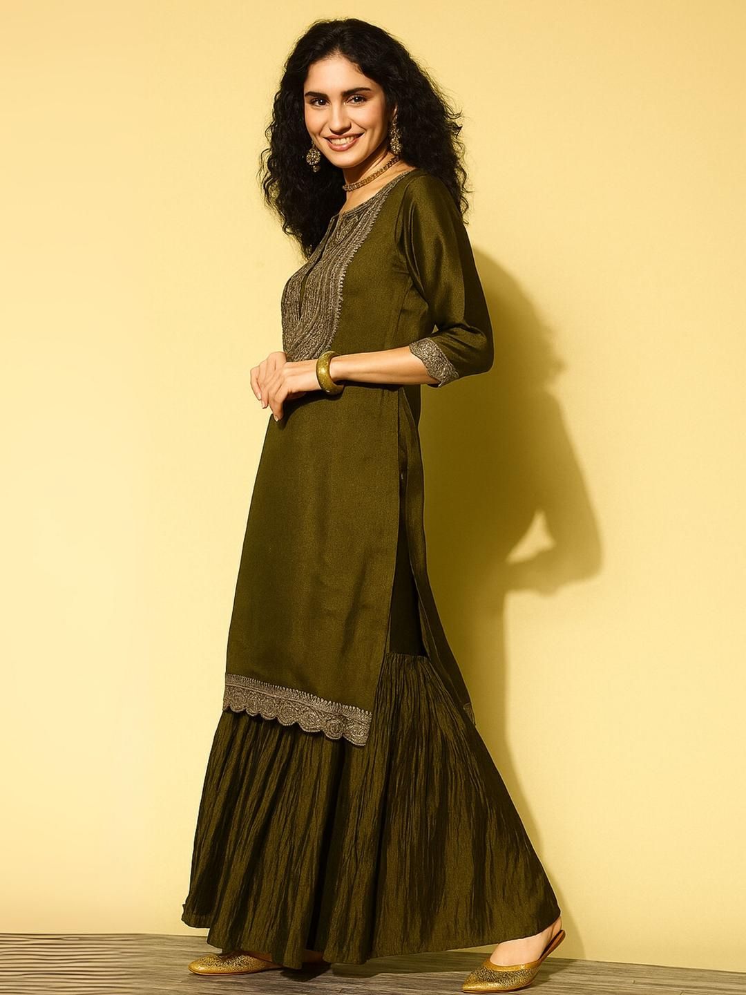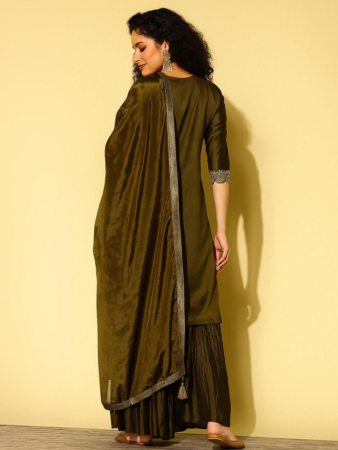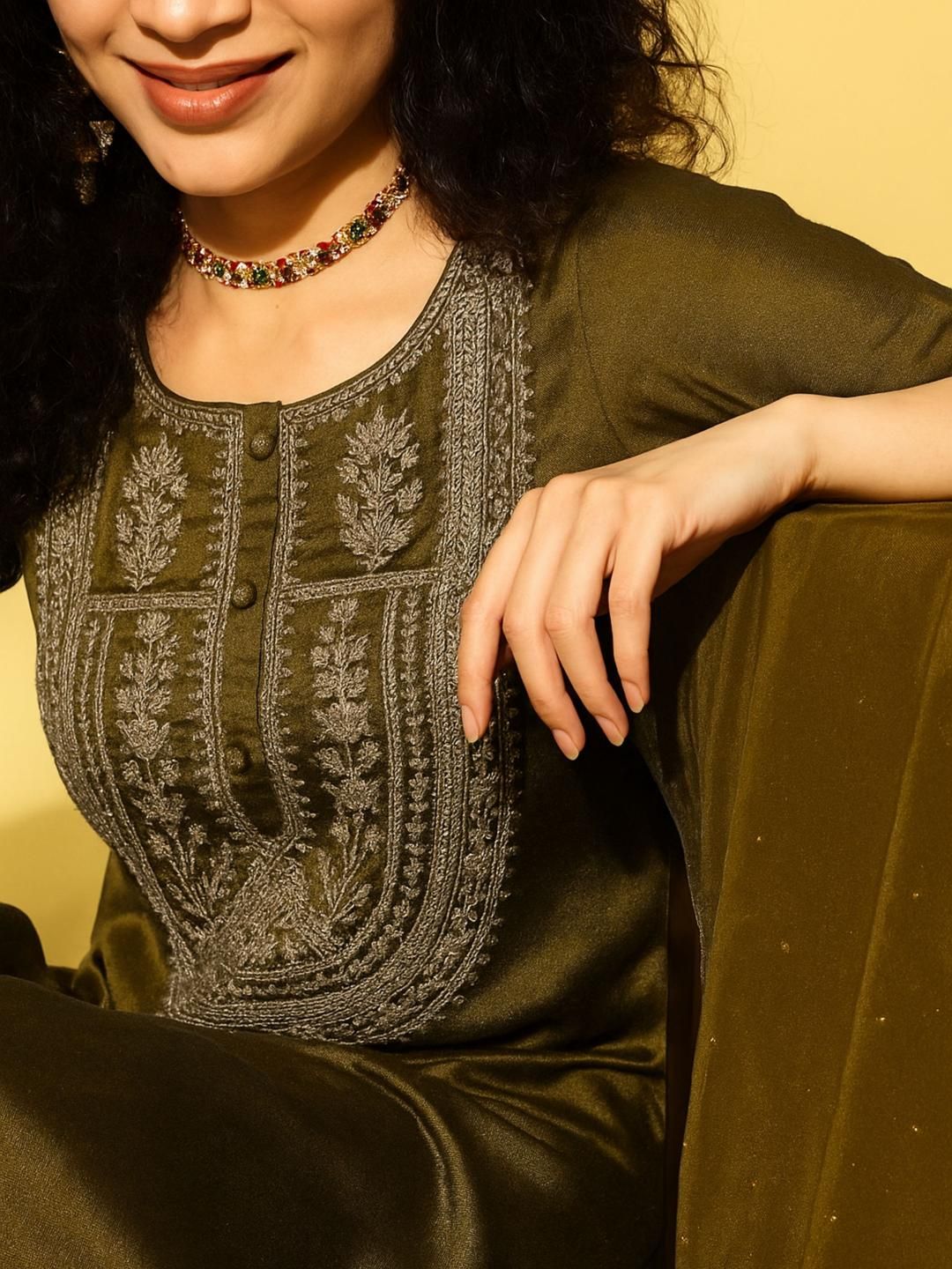 KALINI Women Embroidered Regular Kurta with Trousers & With Dupatta