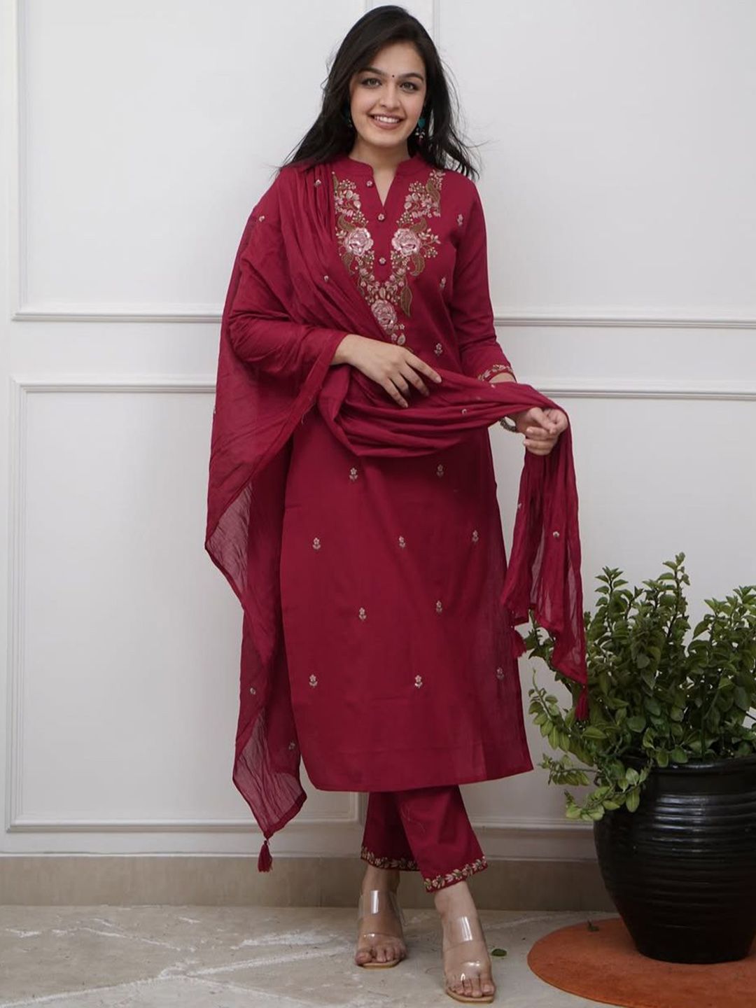 Buy this stylish KALINI Women Embroidered Regular Thread Work Kurta with Trousers & Dupatta at Marincart Nepal. This product offers great quality and value. Perfect for those looking for the latest trends in fashion. Get yours now at unbeatable prices.