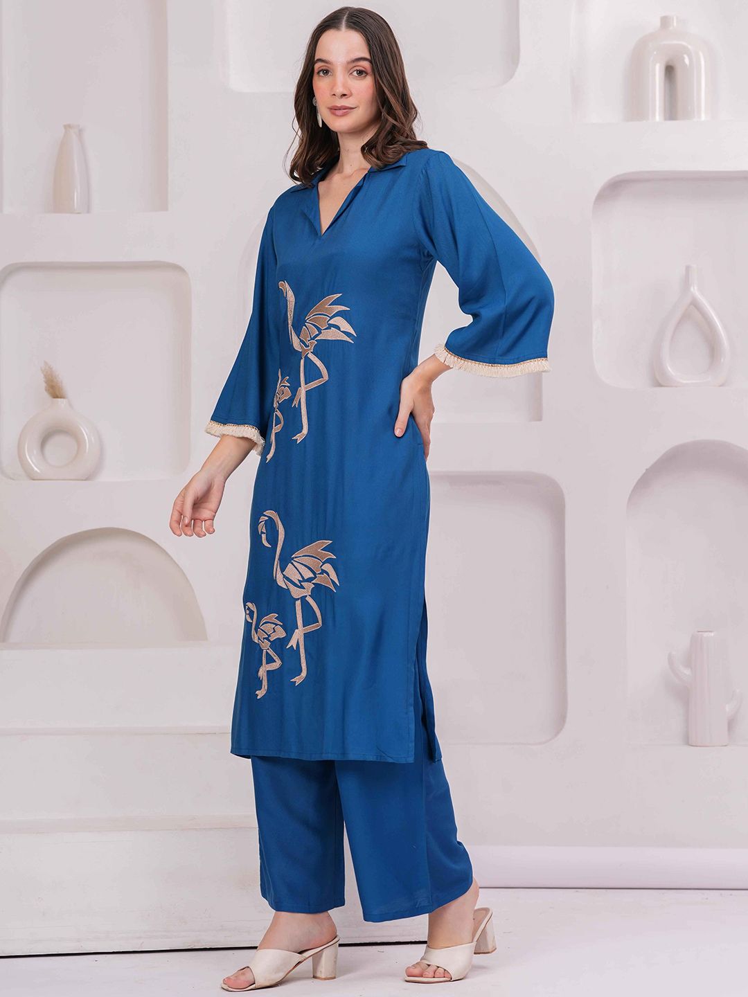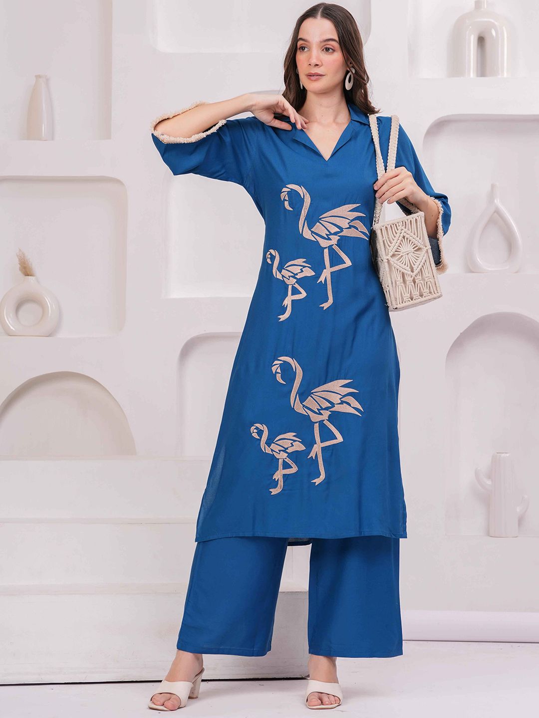 KALINI Women Ethni Motifs Embroidered Regular Thread Work Kurta Set