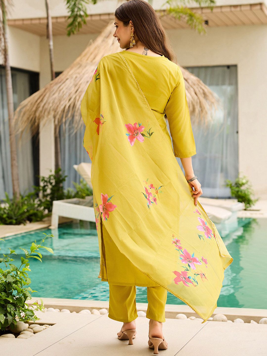 KALINI Women Ethnic Motif Embroidered Thread Work Kurta with Trousers & Dupatta