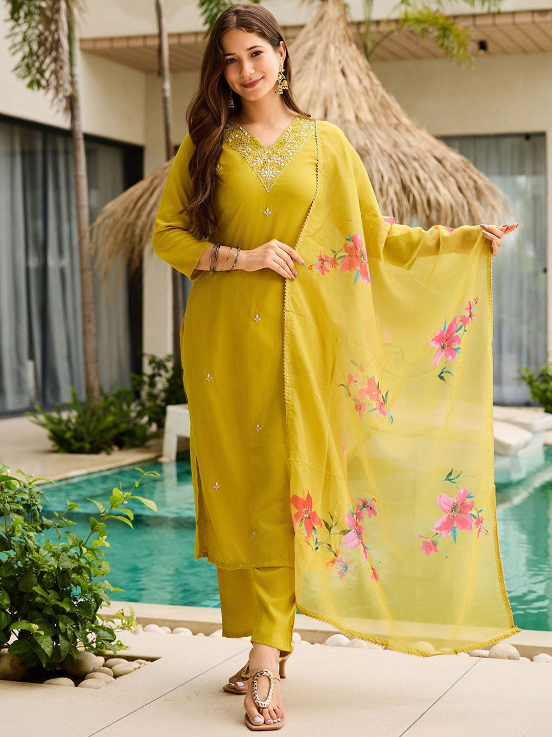 Buy this stylish KALINI Women Ethnic Motif Embroidered Thread Work Kurta with Trousers & Dupatta at Marincart Nepal. This product offers great quality and value. Perfect for those looking for the latest trends in fashion. Get yours now at unbeatable prices.