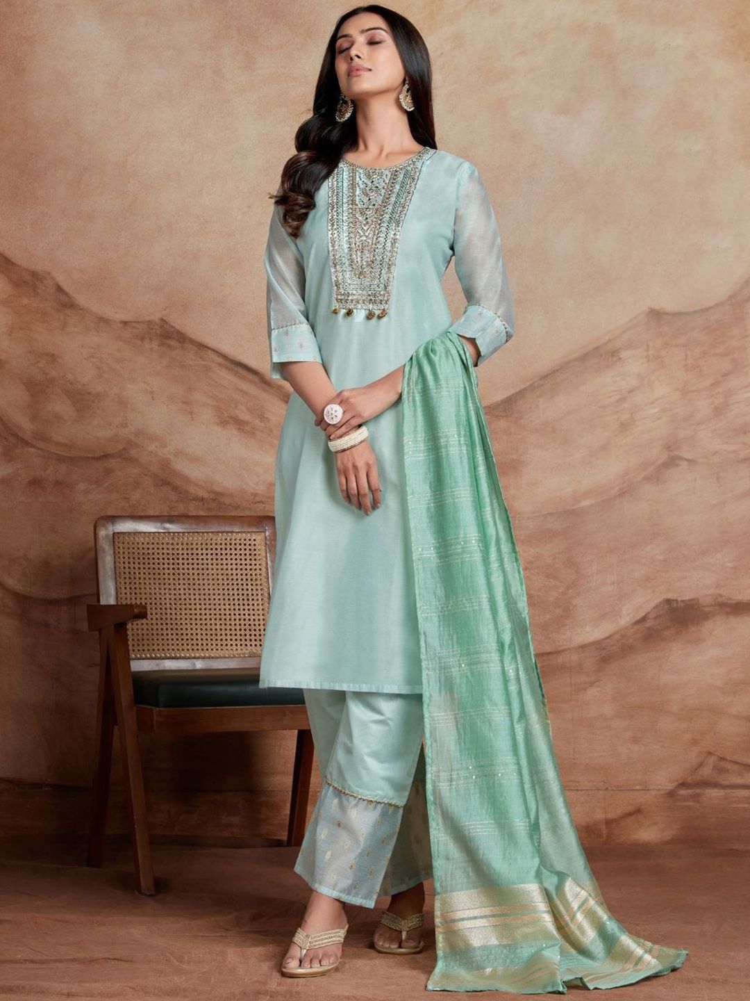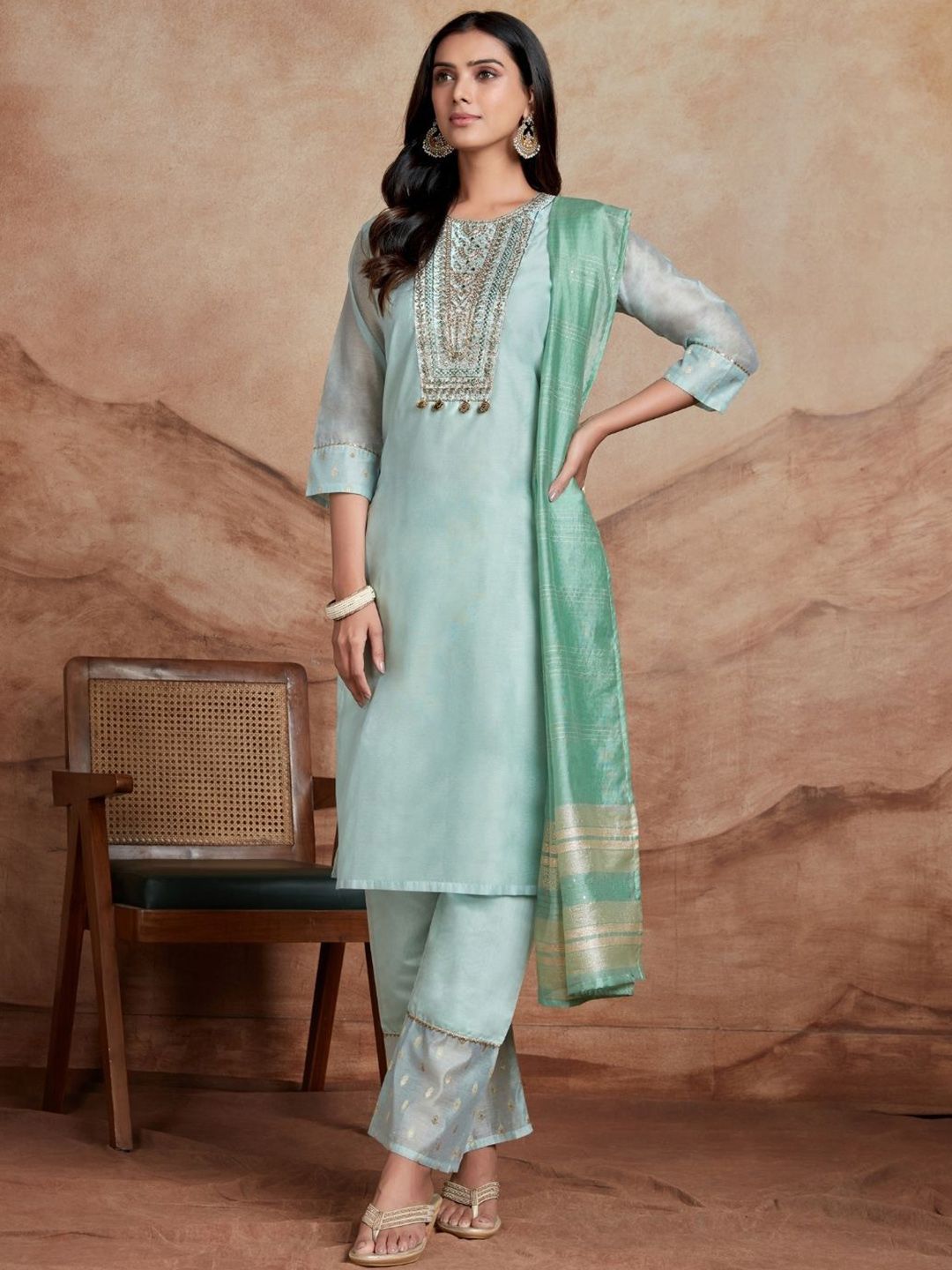 KALINI Women Ethnic Motifs Embroidered Kurta with Trousers & Dupatta