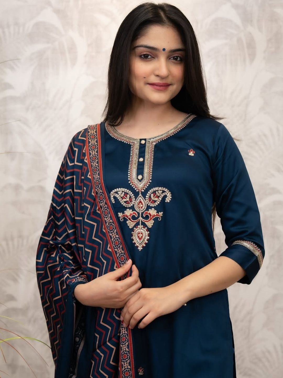 KALINI Women Ethnic Motifs Embroidered Kurta with Trousers & Dupatta