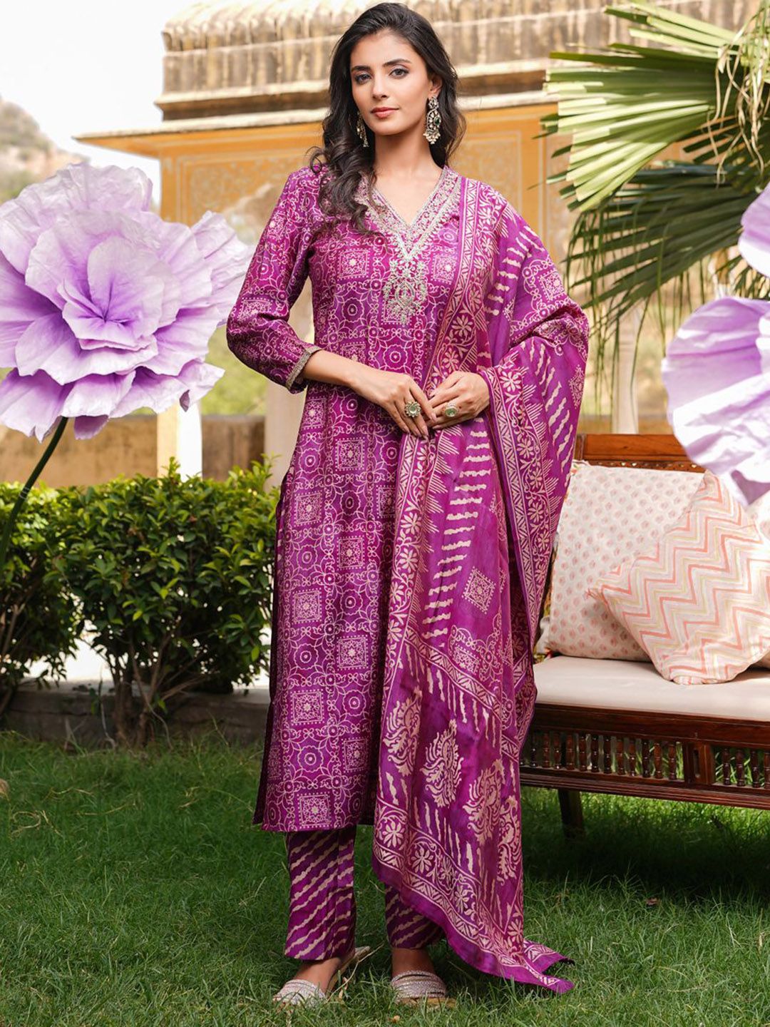 Buy this stylish KALINI Women Ethnic Motifs Embroidered Regular Kurta with Trousers & Dupatta at Marincart Nepal. This product offers great quality and value. Perfect for those looking for the latest trends in fashion. Get yours now at unbeatable prices.