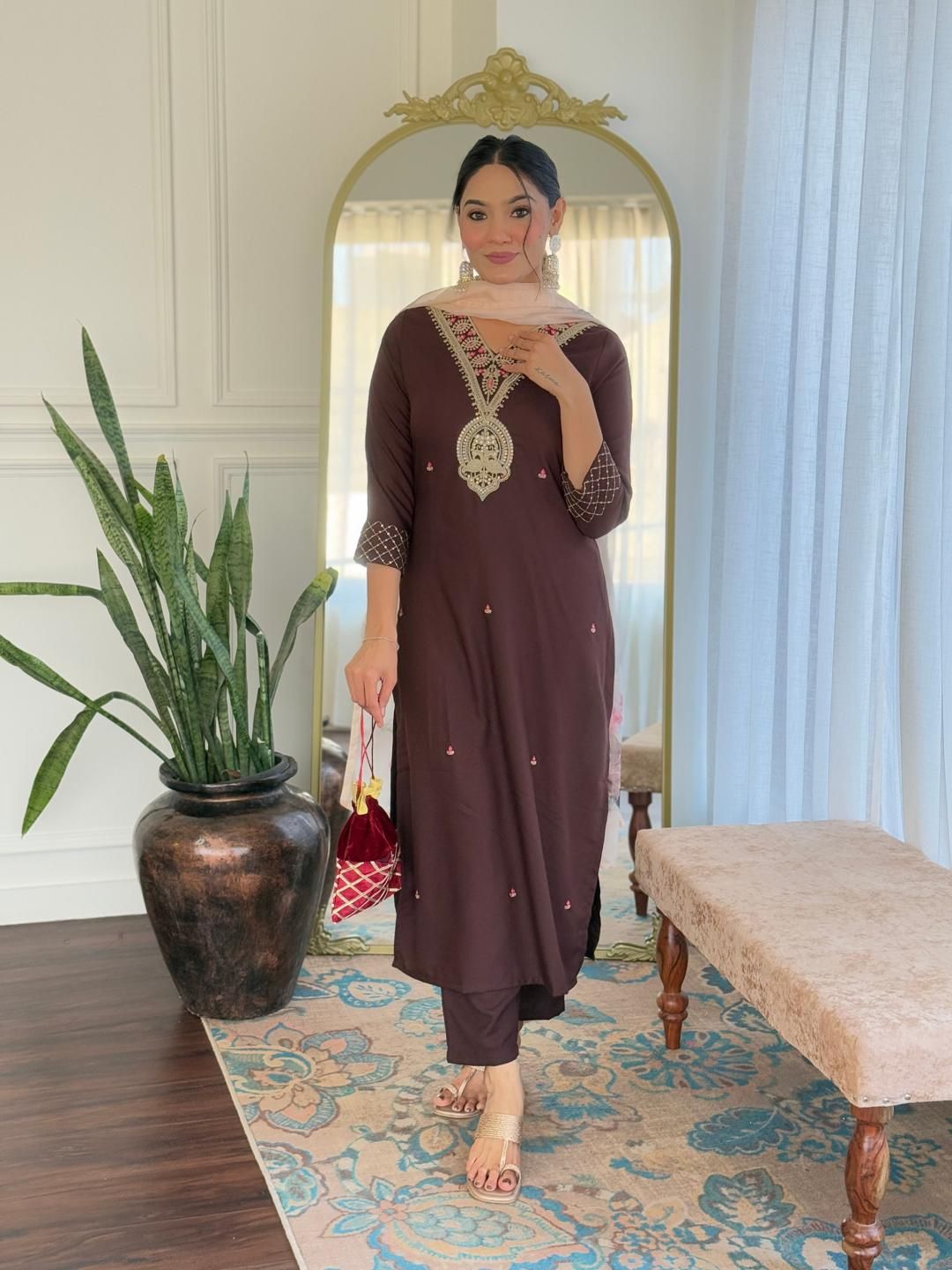 Buy this stylish KALINI Women Ethnic Motifs Embroidered Regular Kurta with Trousers & With Dupatta at Marincart Nepal. This product offers great quality and value. Perfect for those looking for the latest trends in fashion. Get yours now at unbeatable prices.