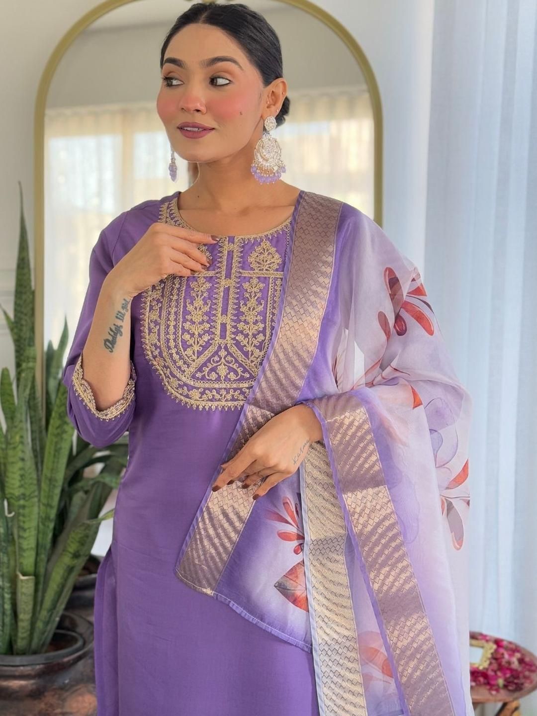 KALINI Women Ethnic Motifs Embroidered Regular Kurta with Trousers & With Dupatta