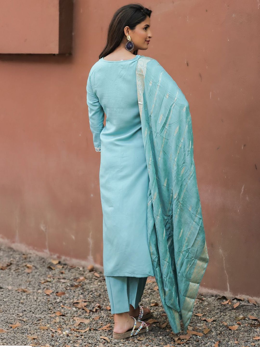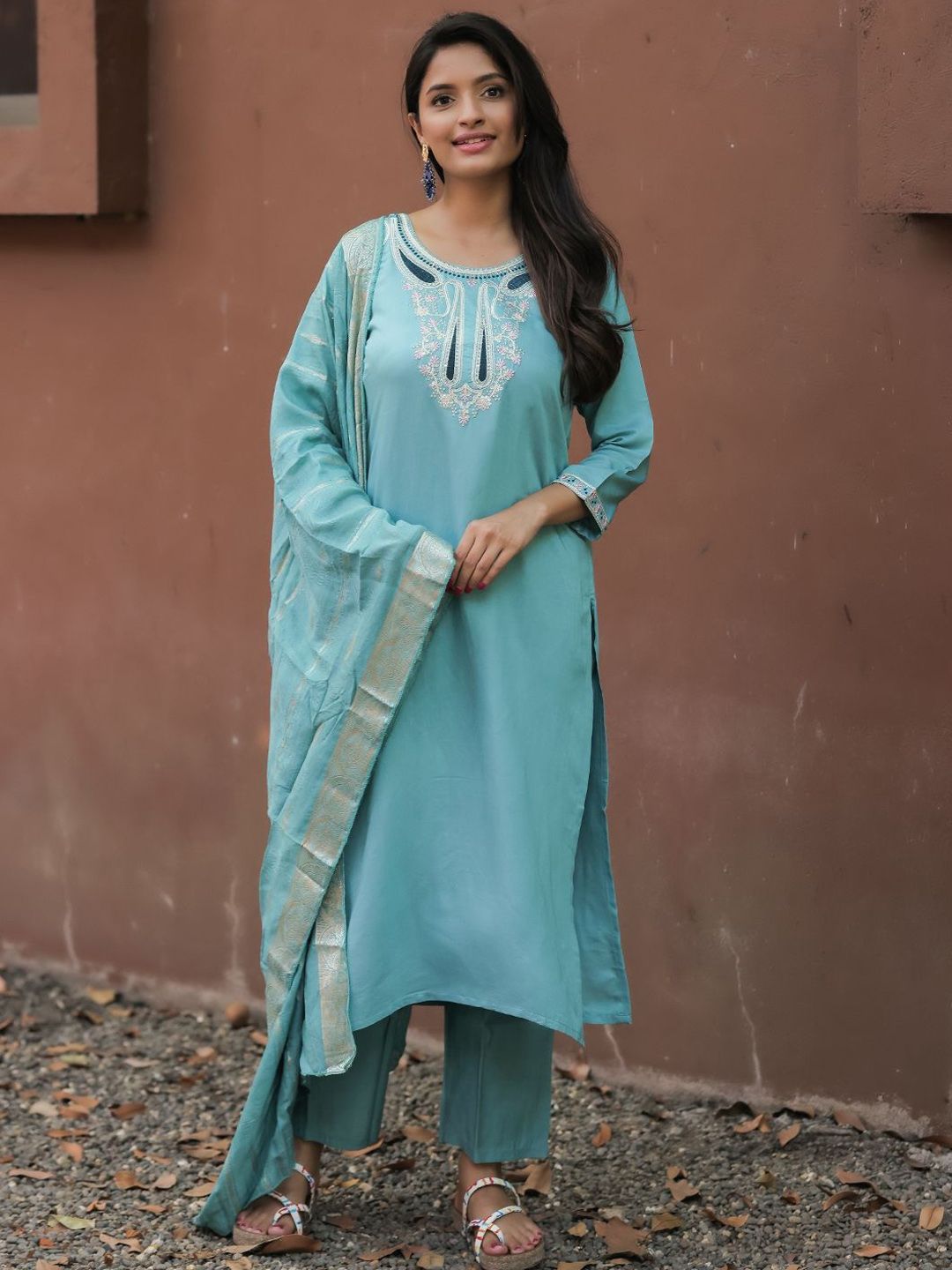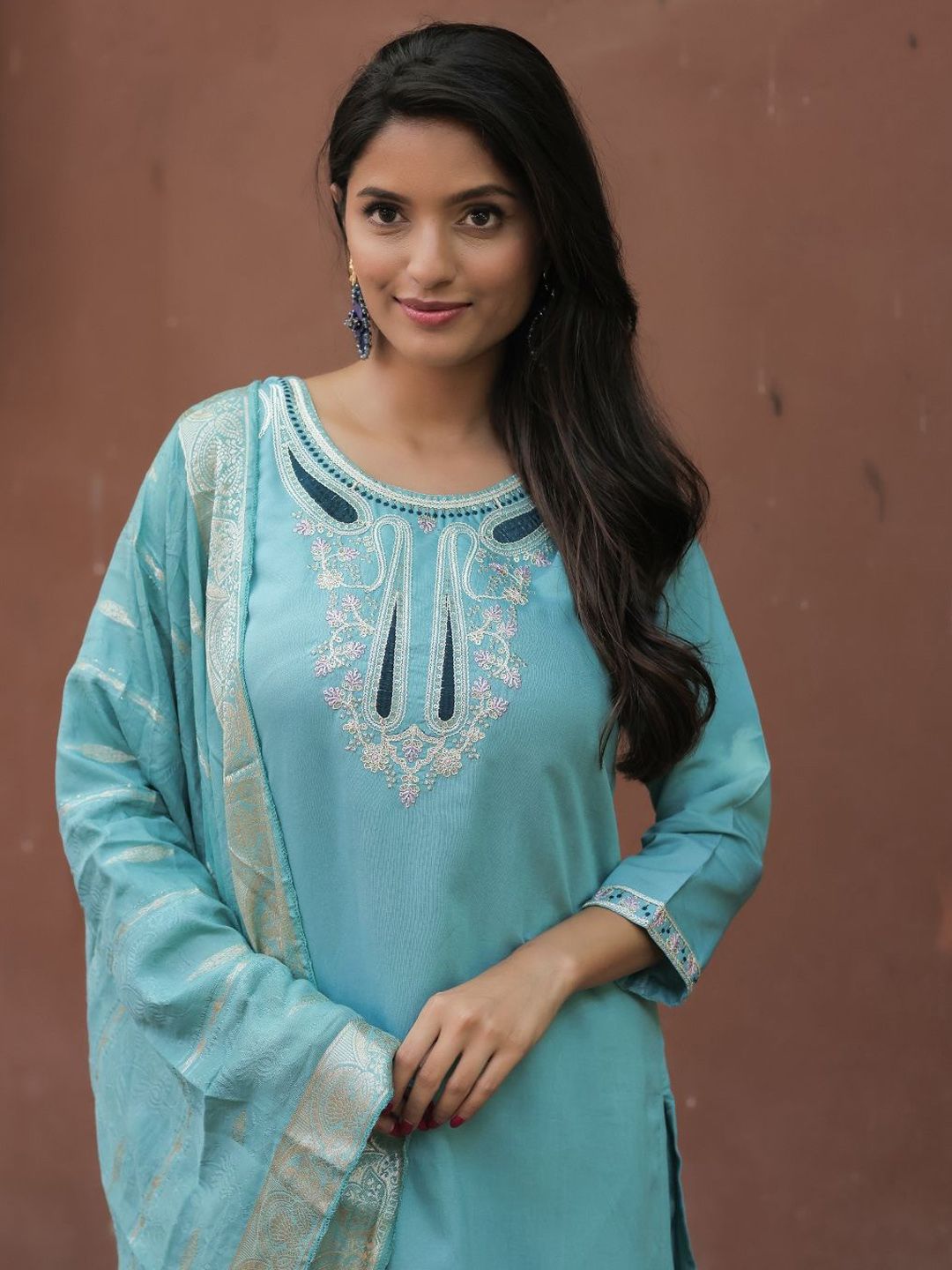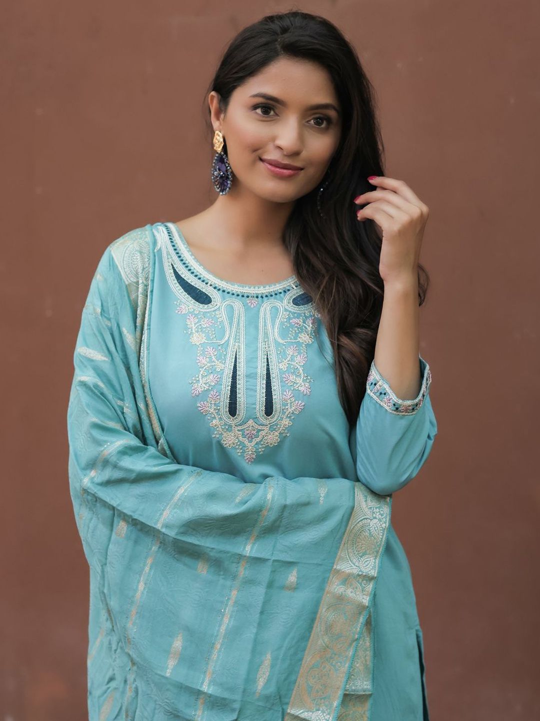 KALINI Women Ethnic Motifs Embroidered Regular Thread Work Kurta with Trousers & Dupatta