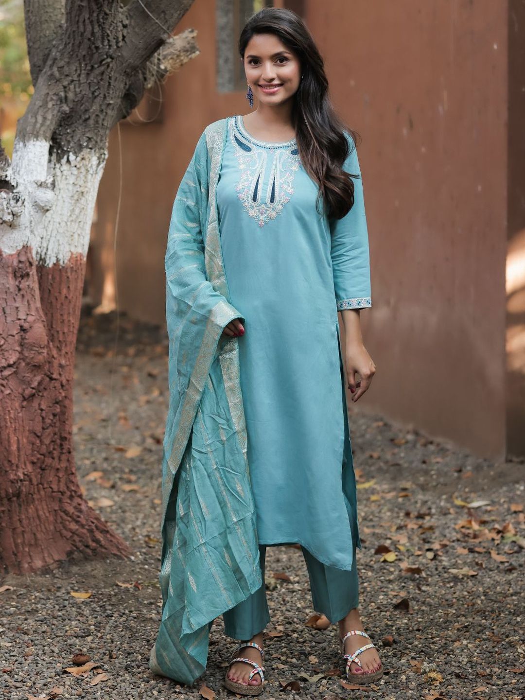 Buy this stylish KALINI Women Ethnic Motifs Embroidered Regular Thread Work Kurta with Trousers & Dupatta at Marincart Nepal. This product offers great quality and value. Perfect for those looking for the latest trends in fashion. Get yours now at unbeatable prices.