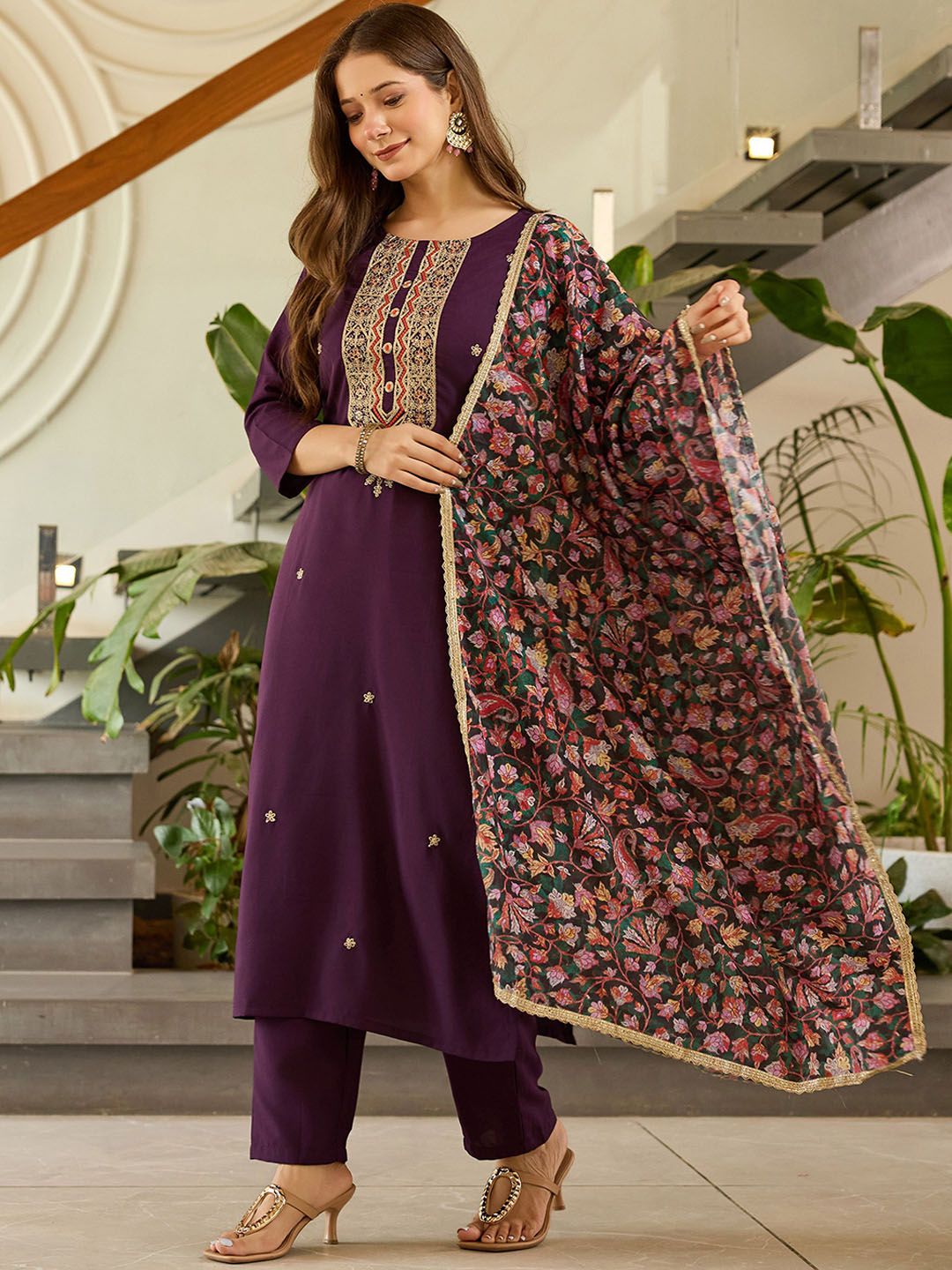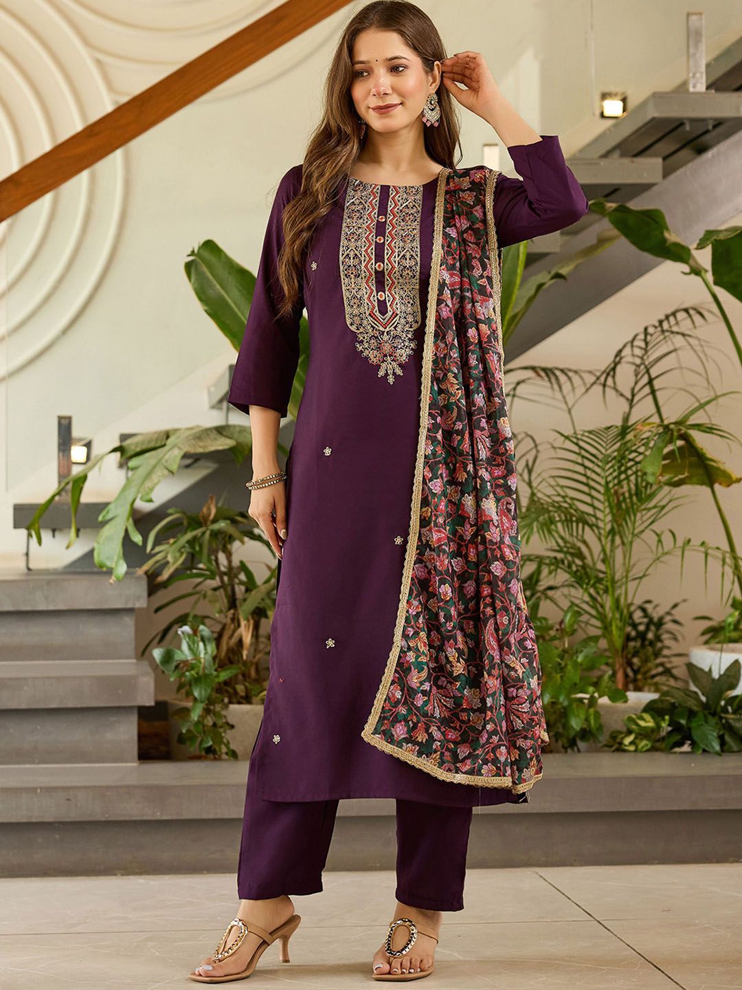 KALINI Women Ethnic Motifs Embroidered Regular Thread Work Kurta with Trousers & Dupatta